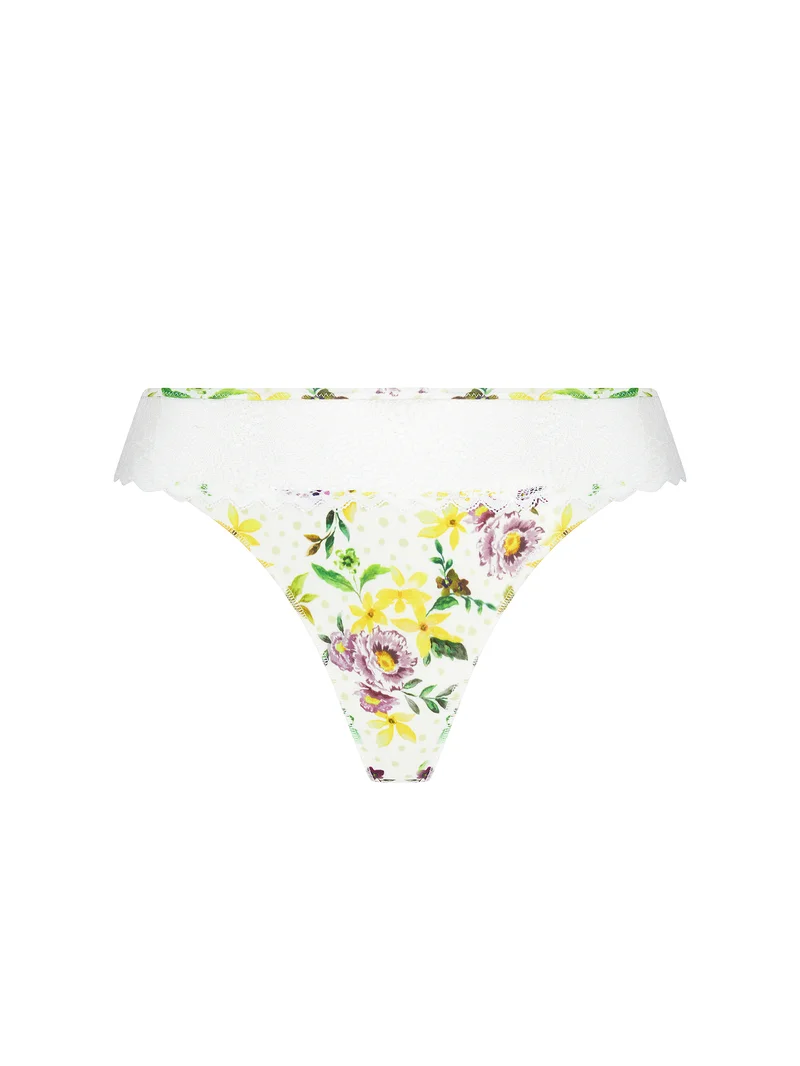Un string fleuri en Poésie Fleurie, offrant une couvrance minimale avec une élégance romantique.