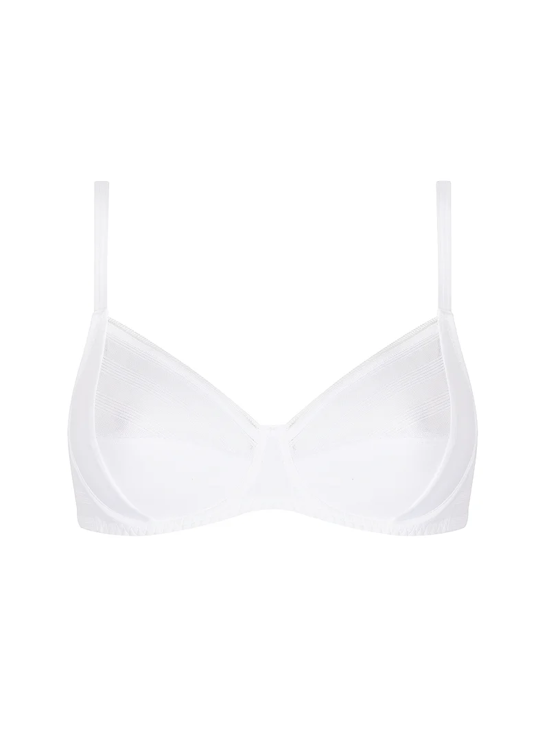 Un soutien-gorge emboîtant raffiné en tulle fin à rayures qui soulève, galbe et soutient avec une légèreté quotidienne.