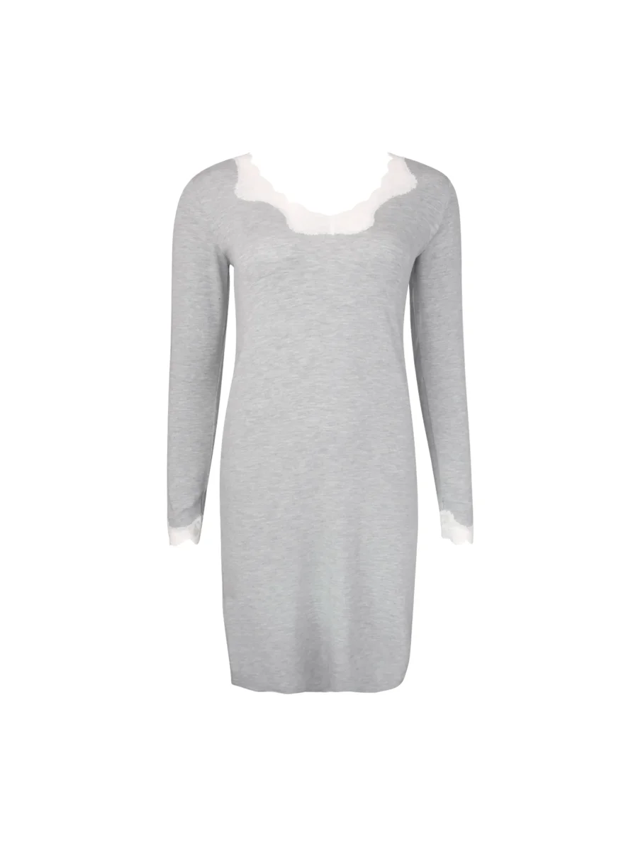 - Décolleté et manches en galon de dentelle.