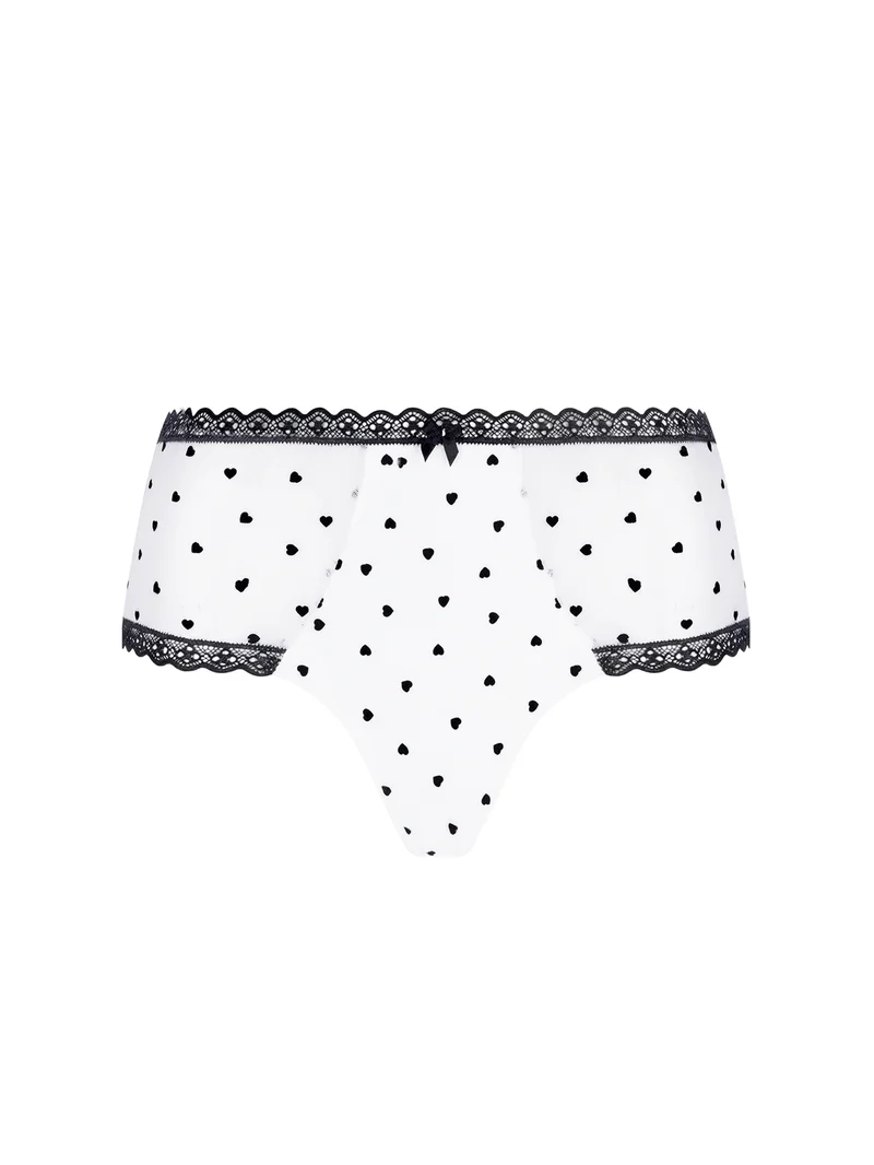 Conçu pour épouser parfaitement les hanches, ce shorty allie confort et style. Ses empiècements transparents et ses broderies graphiques apportent une touche d’originalité tout en restant facile à porter au quotidien. Idéal pour celles qui recherchent une couvrance optimale avec une note tendance.