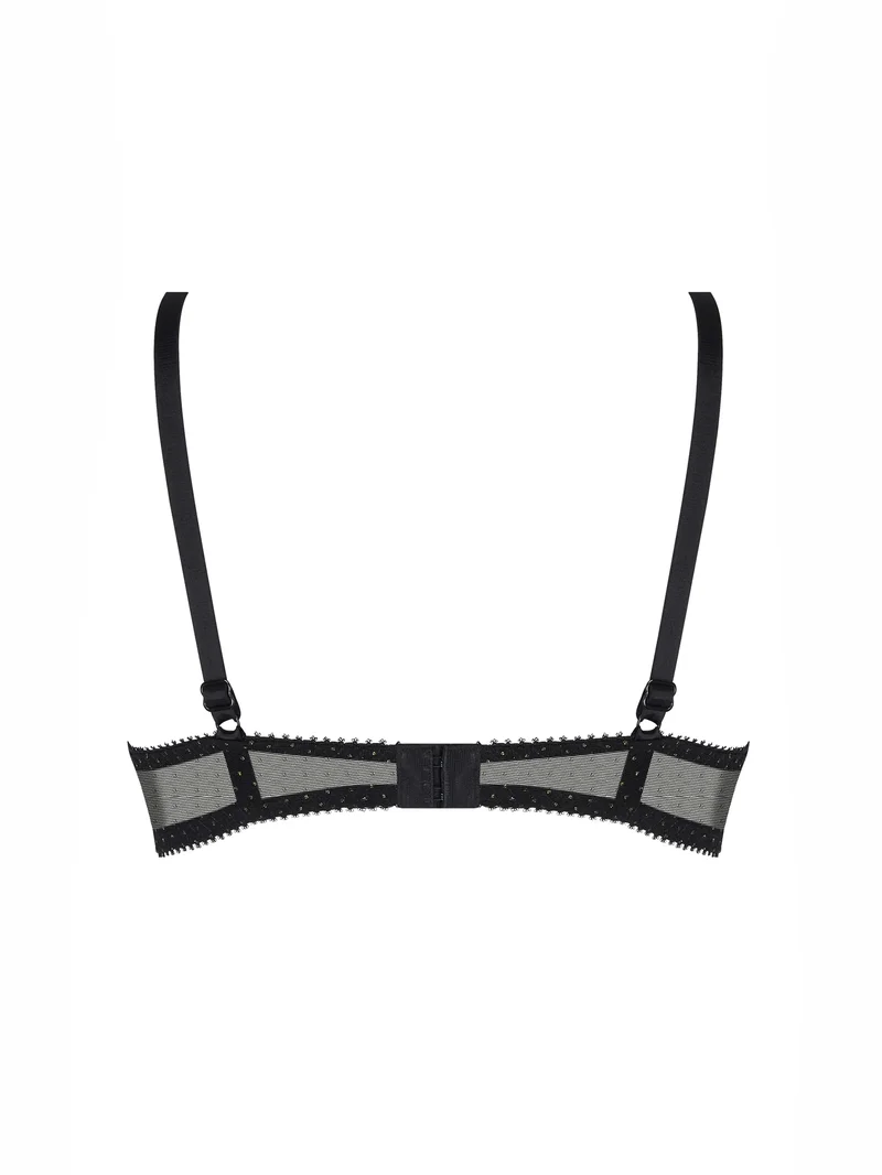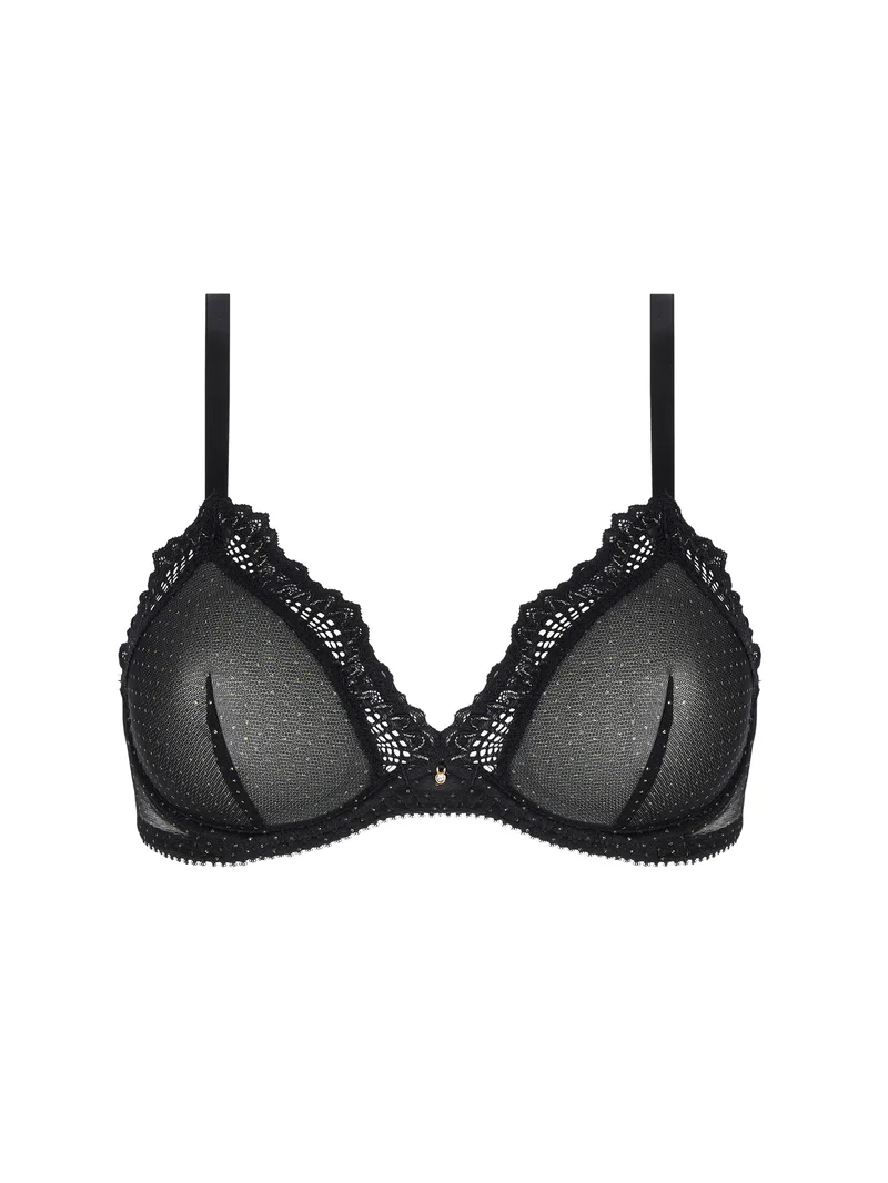 Un bonnet intégral de soutien enveloppé de dentelle mouchetée d’or pour une couverture avec un impact couture.