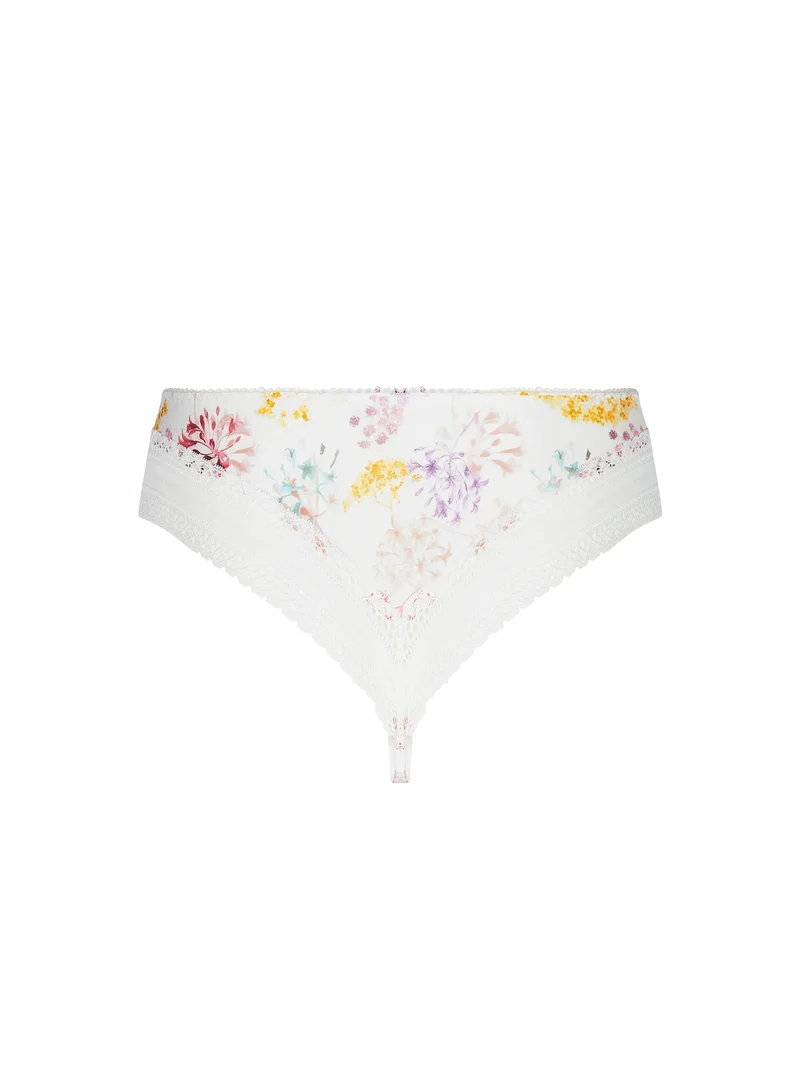 - String en tricot imprimé, avec empiècements en dentelle sur les côtés avant et arrière