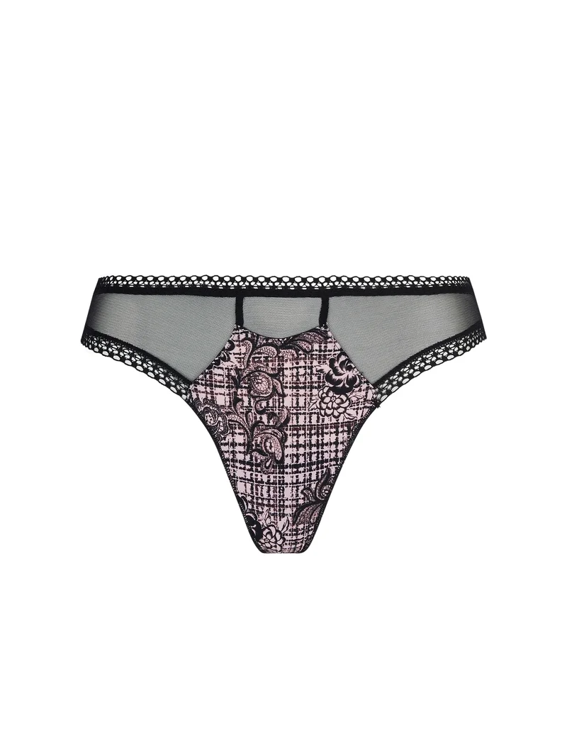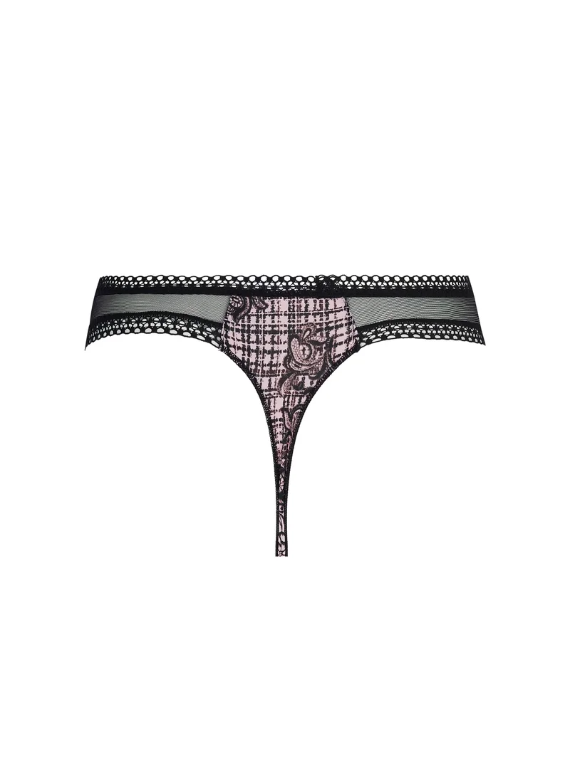 - String en tricot imprimé, doté d’un panneau central imprimé sur le devant et d’empiècements en tulle sur le devant des cuisses