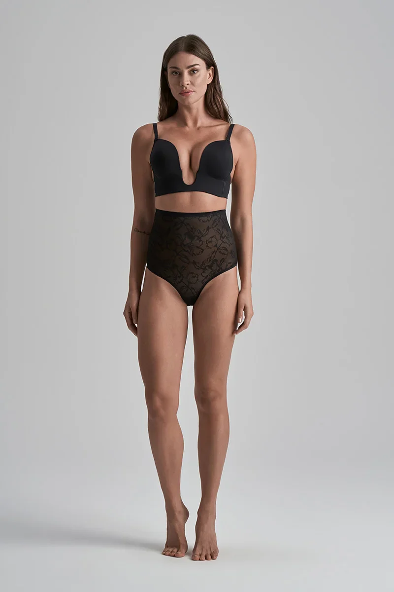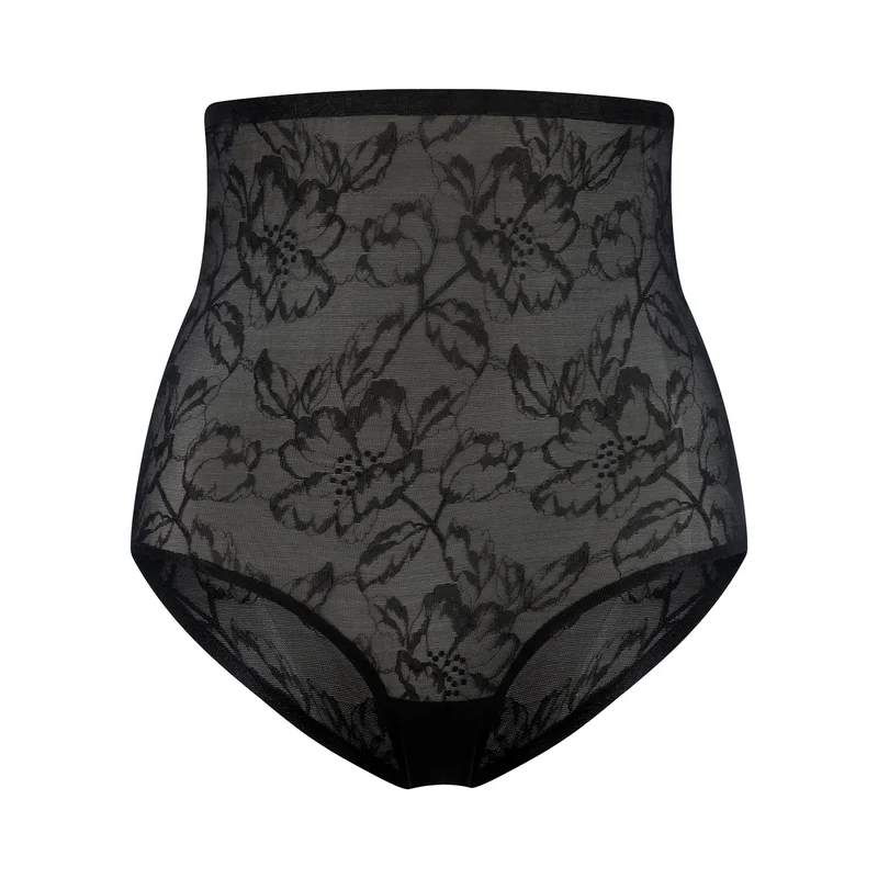 La culotte gainante taille haute en dentelle noire ByeBra associe une dentelle douce à un maintien invisible pour une silhouette élégante et sculptée.