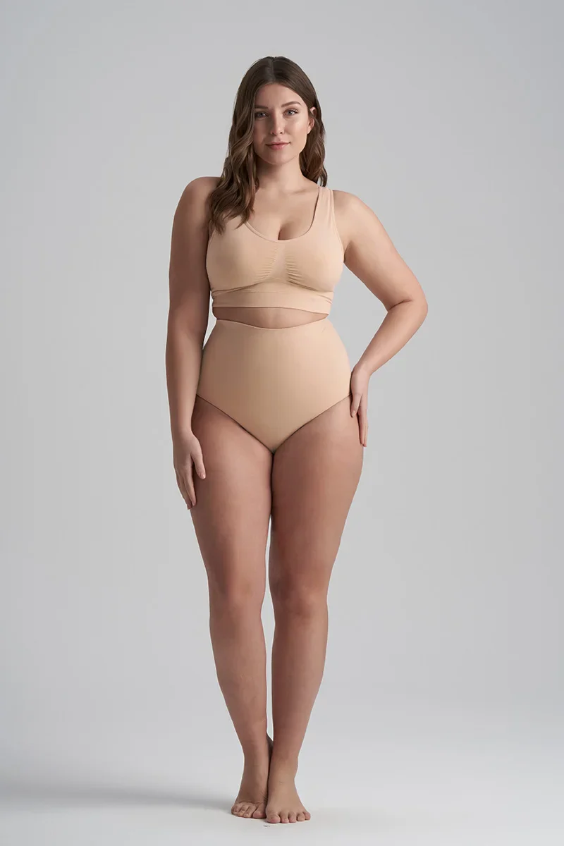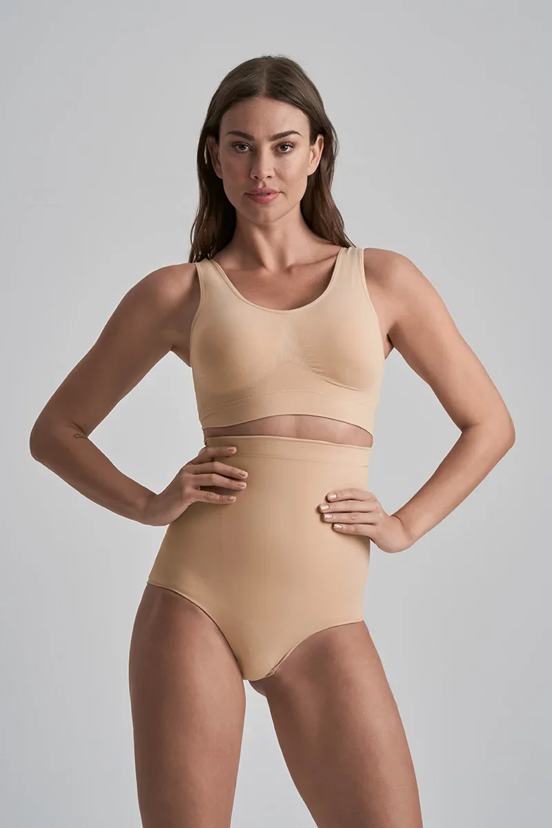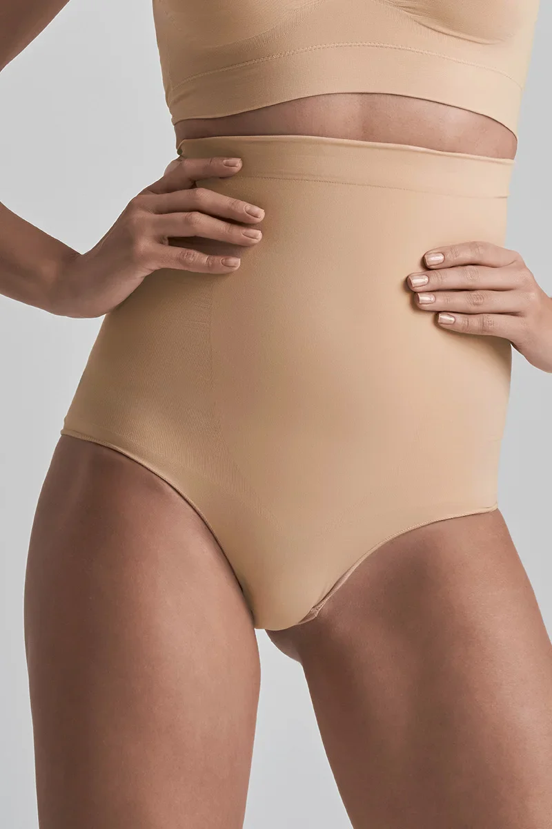 ByeBra – Culotte gainante sans coutures (maintien fort) beige, douce au toucher et taille haute