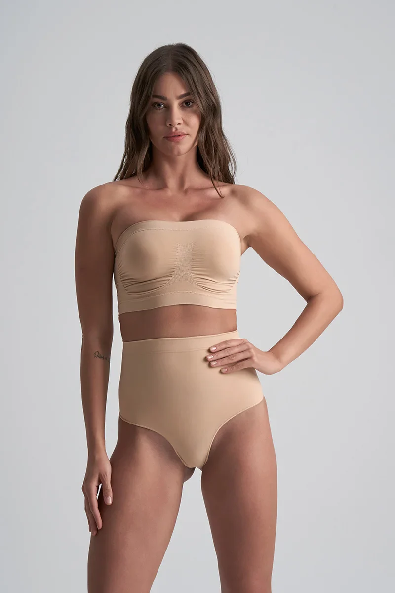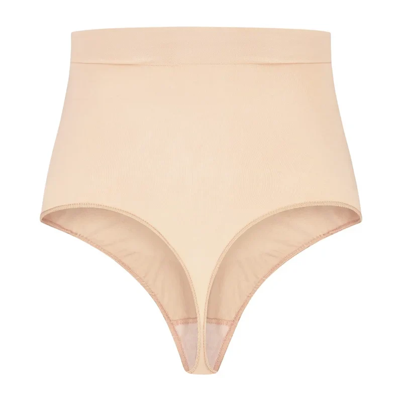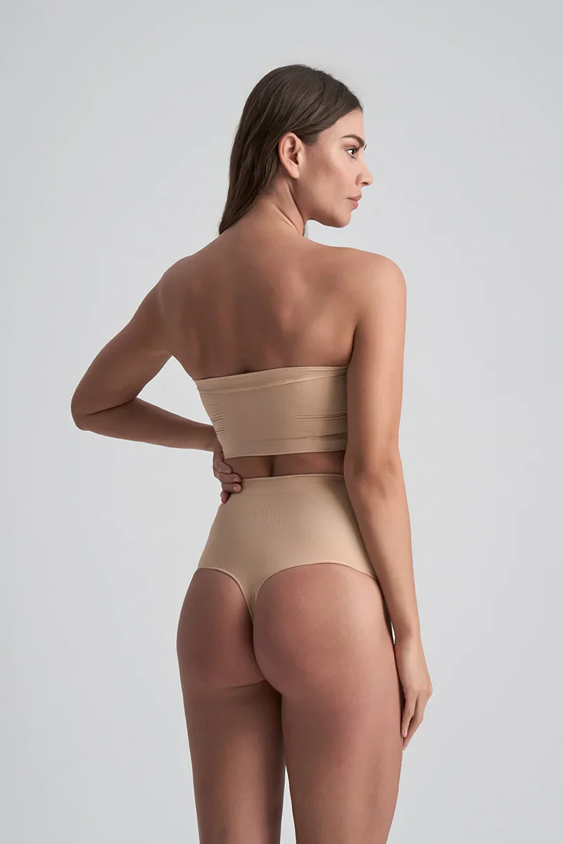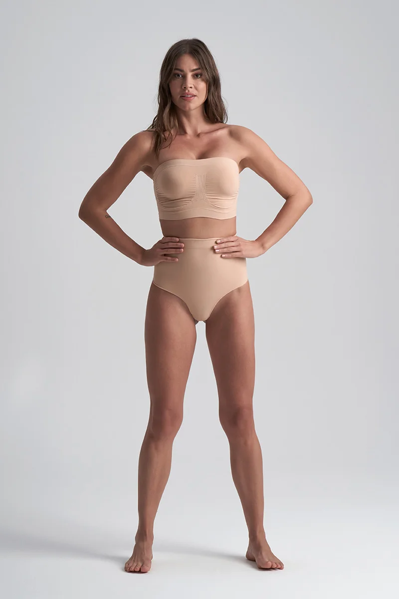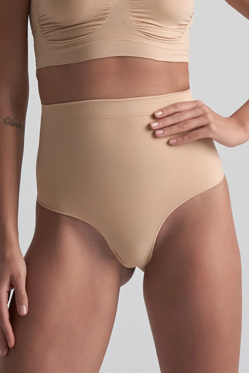 ByeBra – Culotte gainante sans coutures (maintien fort) String taille mi-haute beige au toucher doux