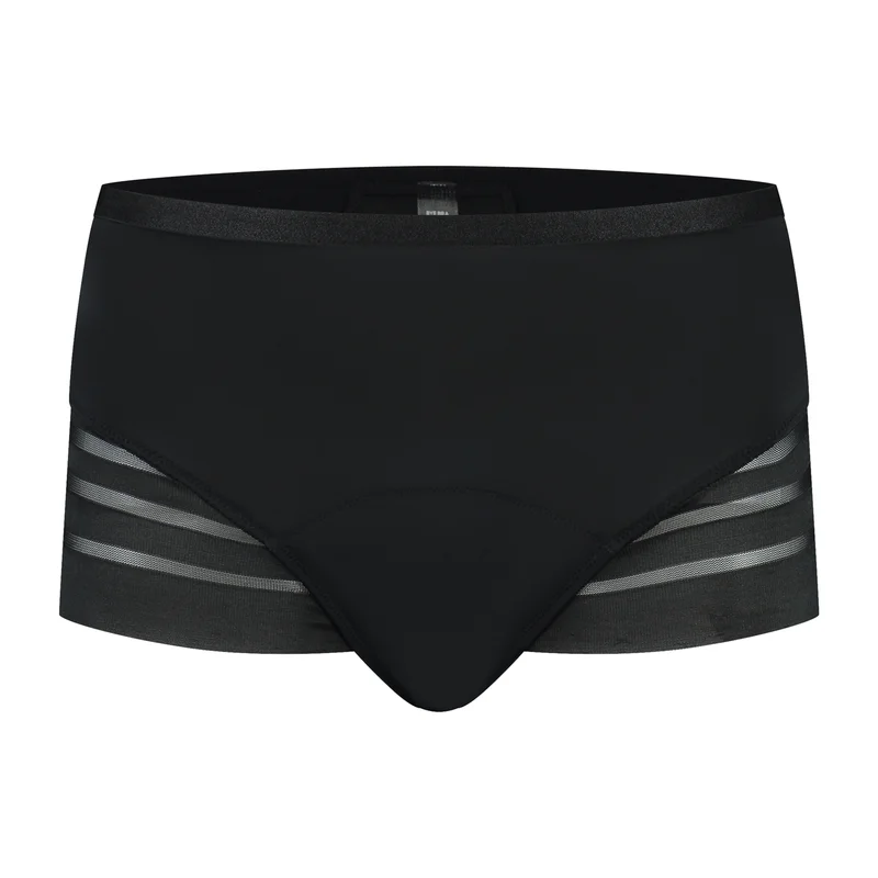Conçue pour allier féminité et fonctionnalité, cette culotte taille basse est dotée d’une base en microfibre douce rehaussée de dentelle délicate pour un style raffiné, inspiré de la lingerie. Le tissu est doux et respirant au contact de la peau, tandis que le cœur absorbant laminé intégré offre une protection fiable pour les flux moyens, sans volume superflu. Sa coupe taille basse assure un maintien confortable au niveau des hanches, créant une silhouette flatteuse qui épouse les mouvements du corps. Ses bords sans coutures la rendent invisible sous les vêtements moulants, pour une discrétion assurée tout au long de la journée. À la fois pratique et élégante, elle est idéale pour le travail, les tenues décontractées et un confort optimal au quotidien à vélo.