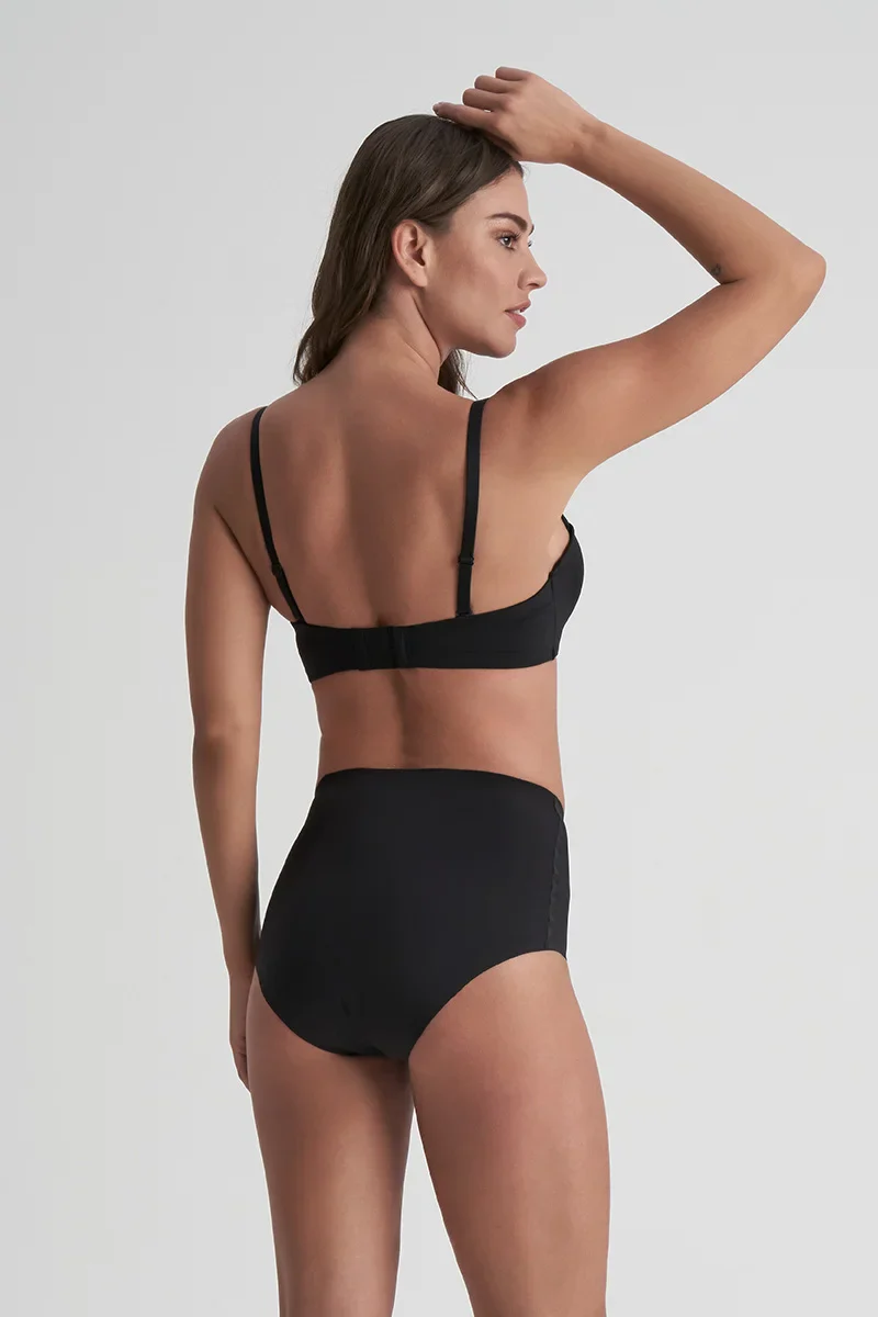 La culotte menstruelle haute anti-fuites ByeBra noire offre une protection fiable pour les flux abondants, avec une coupe douce et un maintien optimal pour une confiance totale.