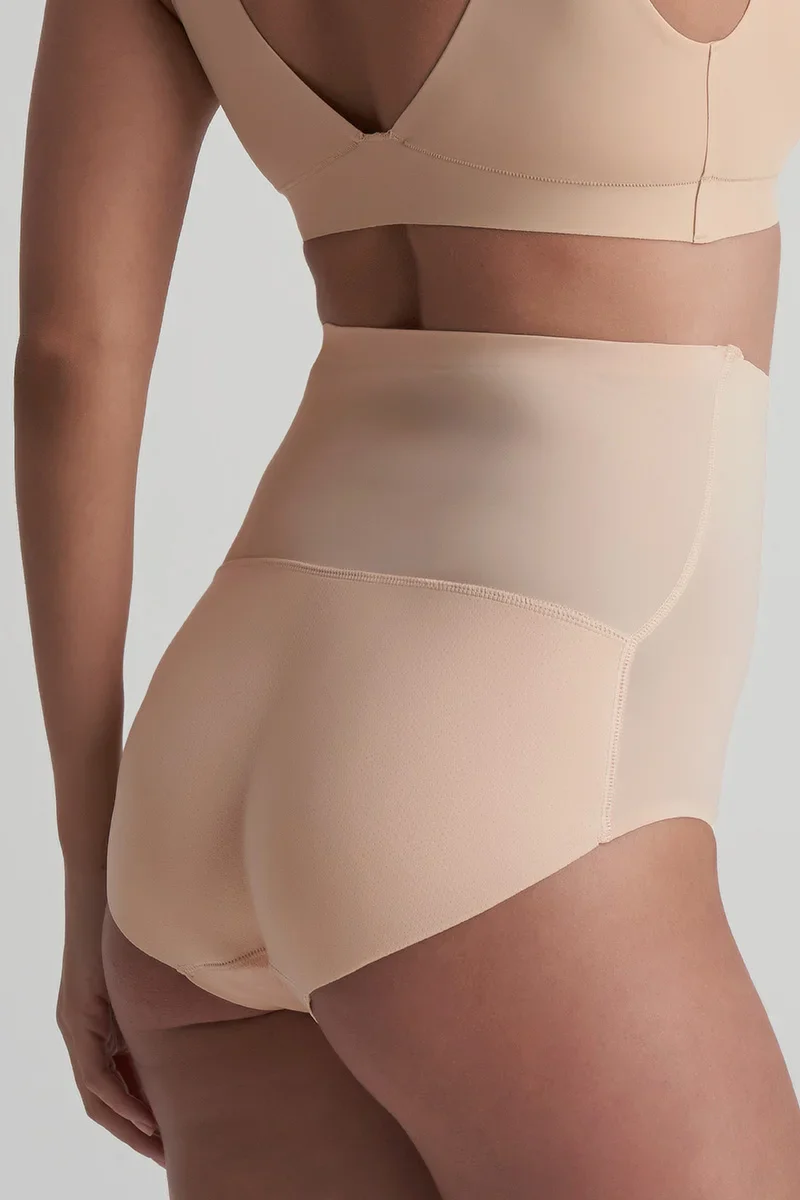 La culotte rembourrée taille haute ByeBra beige offre un galbe instantané et une silhouette lisse et sculptée.