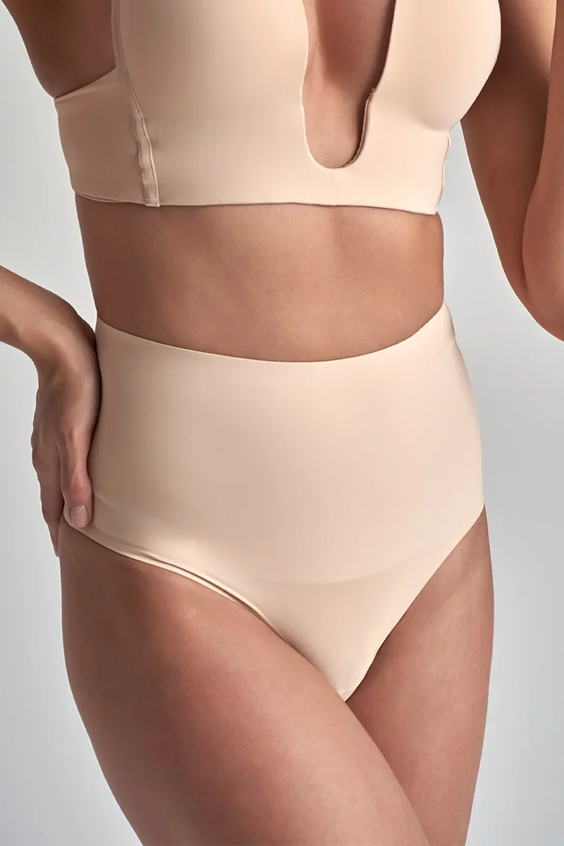 ByeBra – Gainant taille haute (Maintien extra fort) String taille mi-haute beige