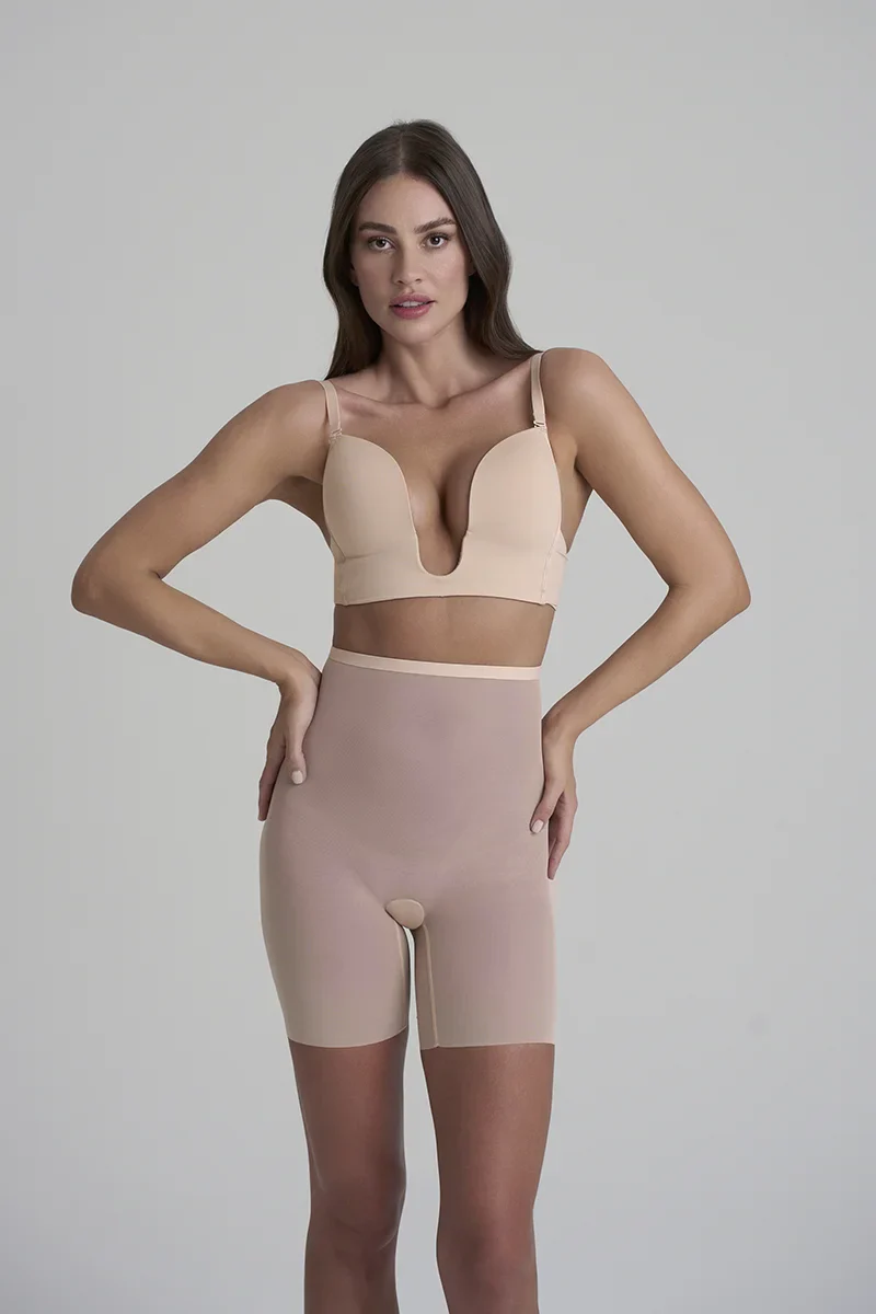 Le shorty taille haute en tulle gainant beige ByeBra offre un maintien moyen tout en étant doux, respirant et léger.