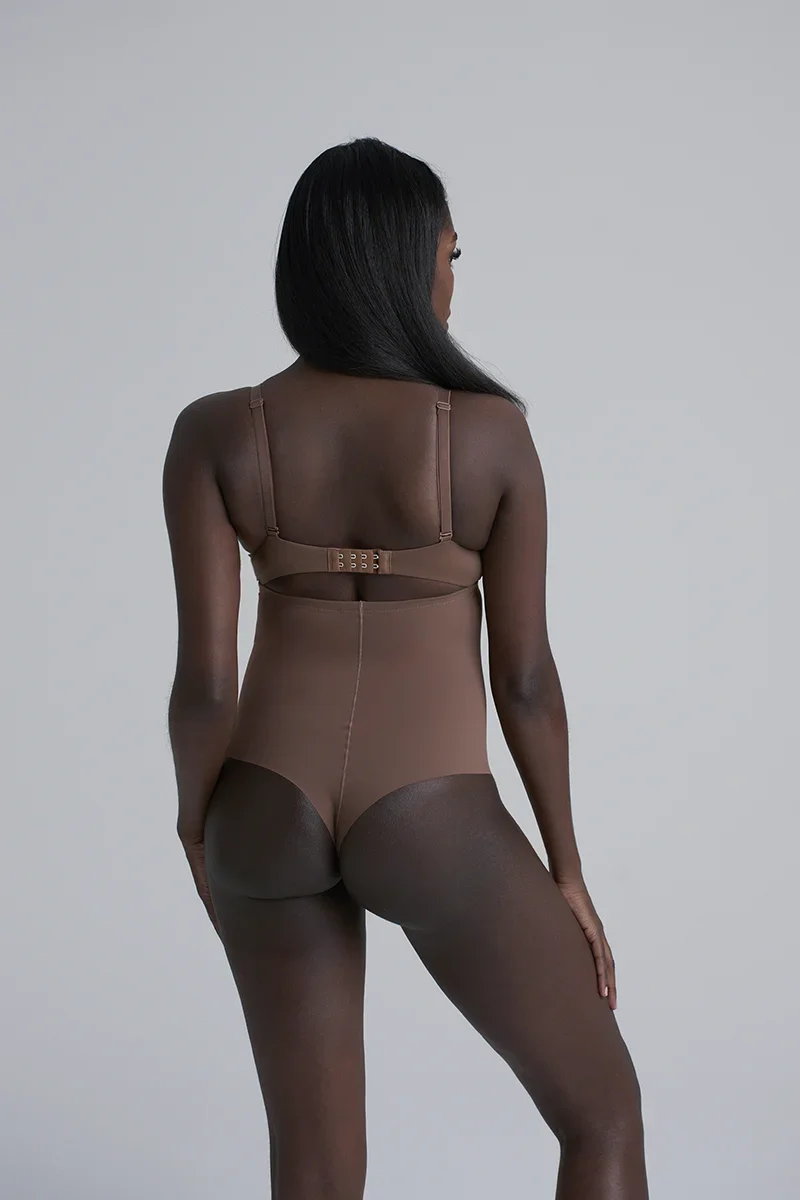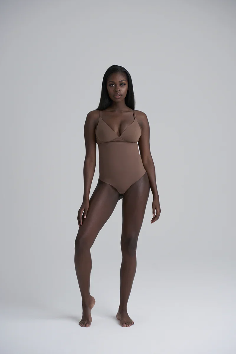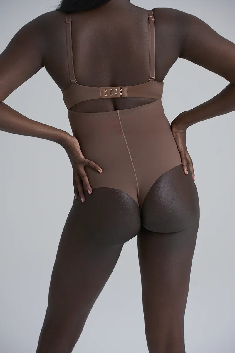 Le string sculptant taille haute ByeBra couleur cacao offre un galbe puissant et une fusion parfaite avec les teints plus foncés.