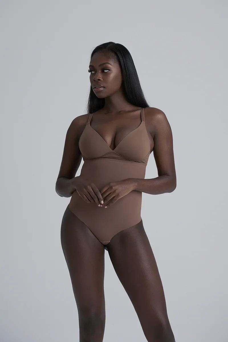 ByeBra – Lingerie sculptante (Maintien fort) String sculptant taille haute couleur cacao