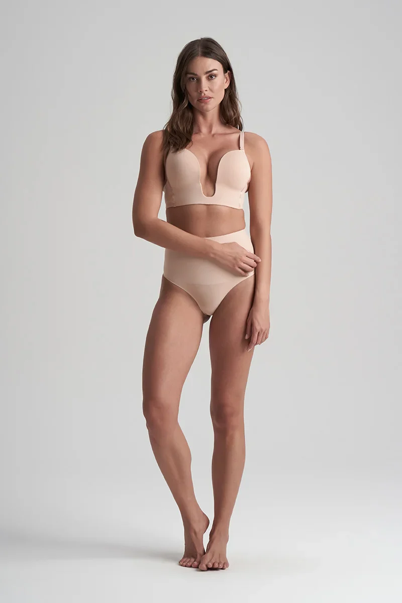 Le string sculptant taille mi-haute ByeBra beige offre un galbe optimal et un fini lisse et sans marques.