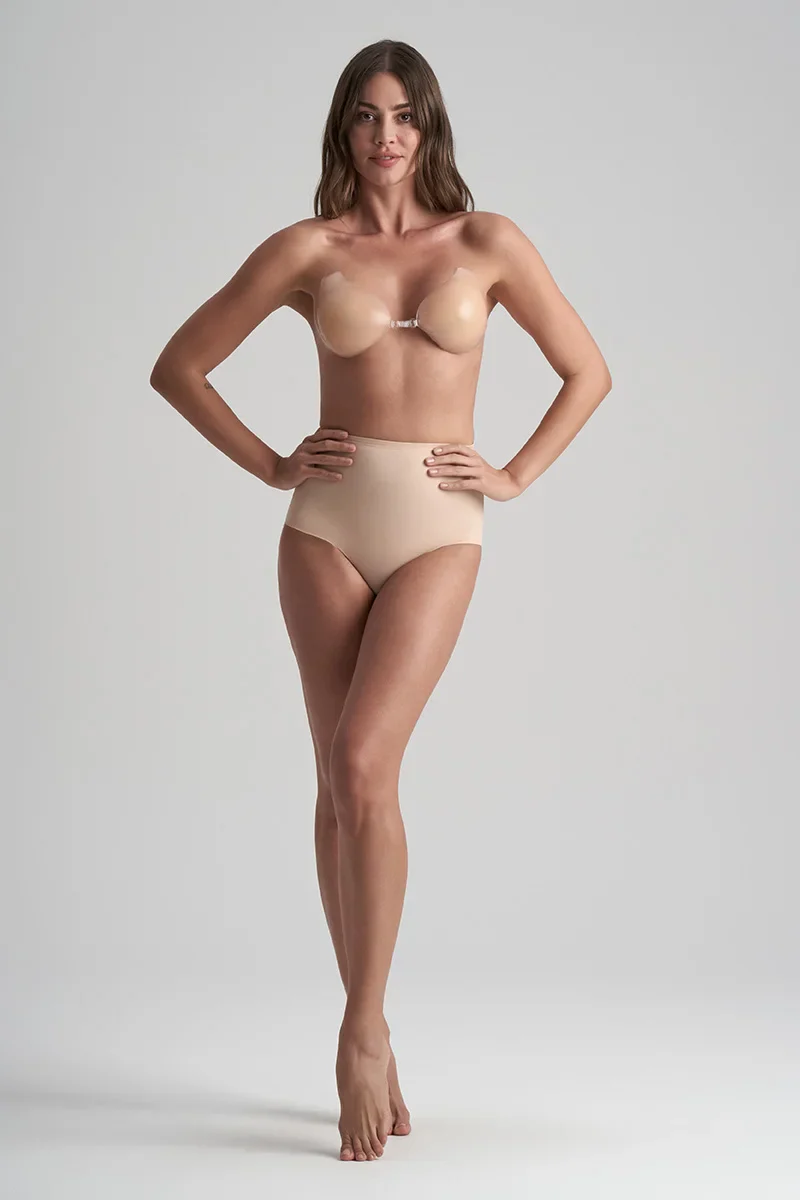 Les bonnets en silicone beiges de ByeBra offrent un galbe naturel et une couvrance lisse et invisible.