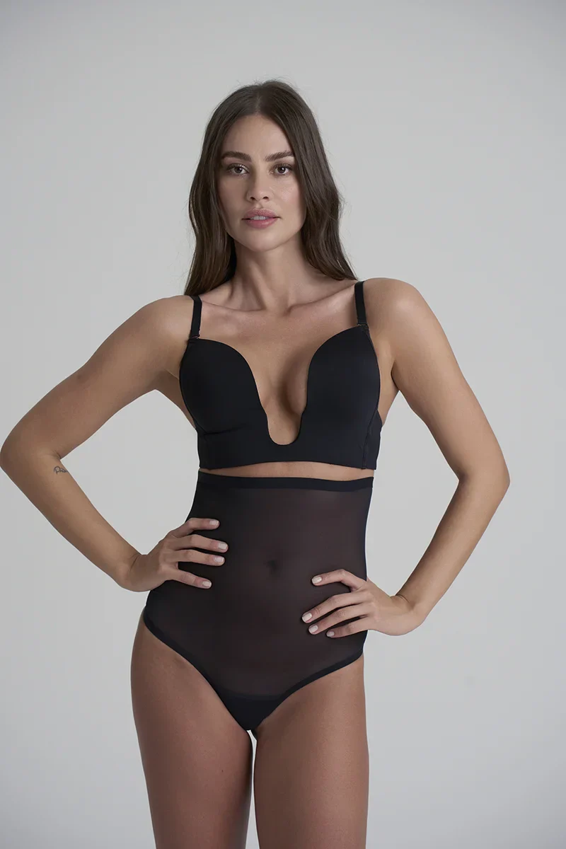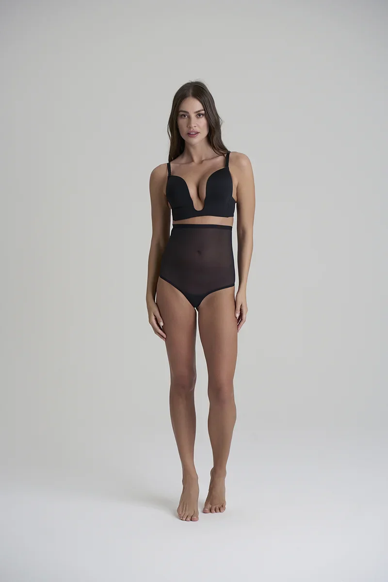 Le string taille haute en tulle gainant ByeBra noir offre une silhouette sculptée avec une finition lisse et invisible.