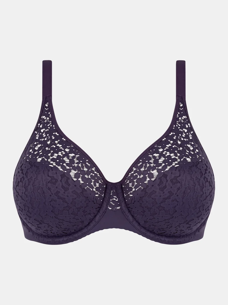 Un soutien-gorge moulé à couvrance totale de la ligne Norah, dans le luxueux coloris Violet Fatal, alliant des bonnets lisses à des accents de dentelle féminine.