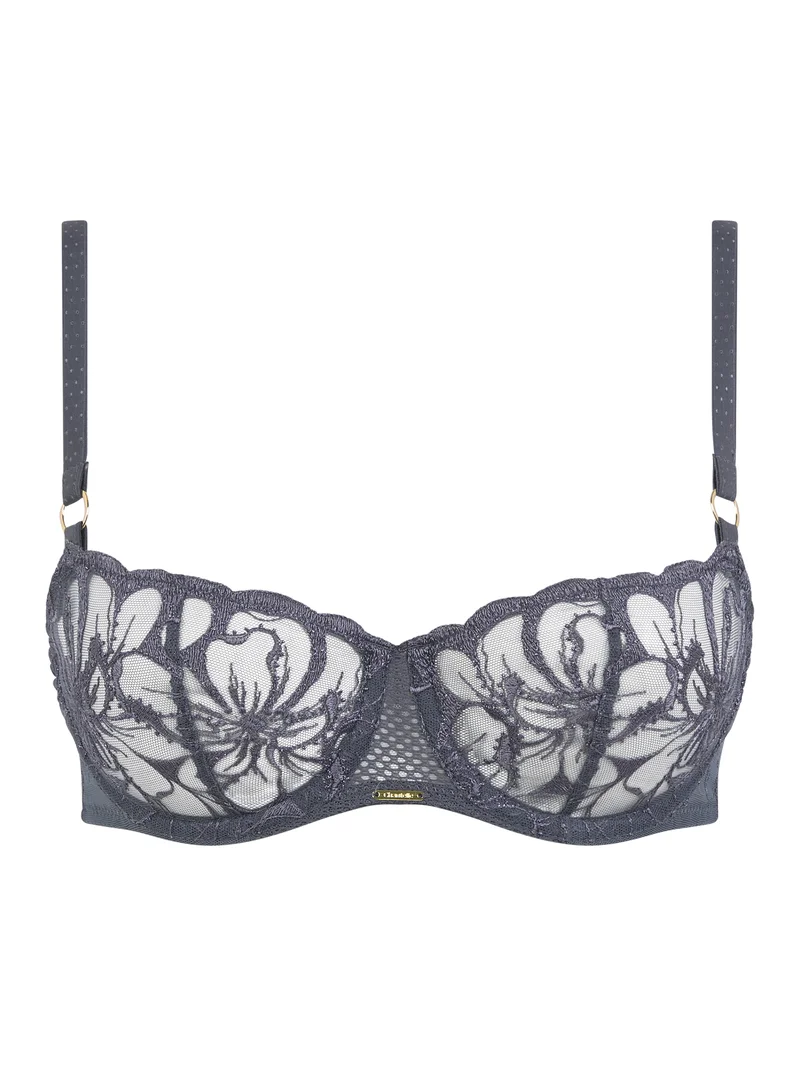Un soutien-gorge balconnet demi-bonnet sensuel offrant un galbe rehaussé et orné de broderies florales.
