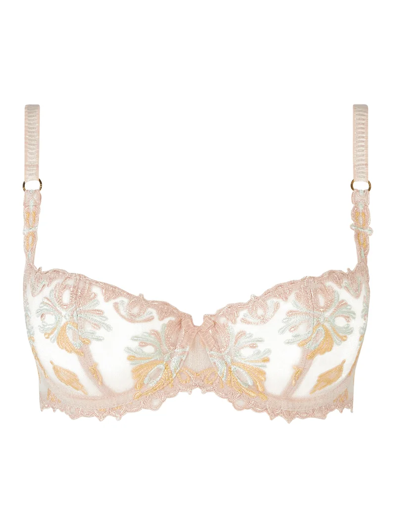 Le soutien-gorge balconnet Chantelle Champs Élysées en beige doré multicolore allie broderie couture et maintien sculptant pour une silhouette luxueuse.
