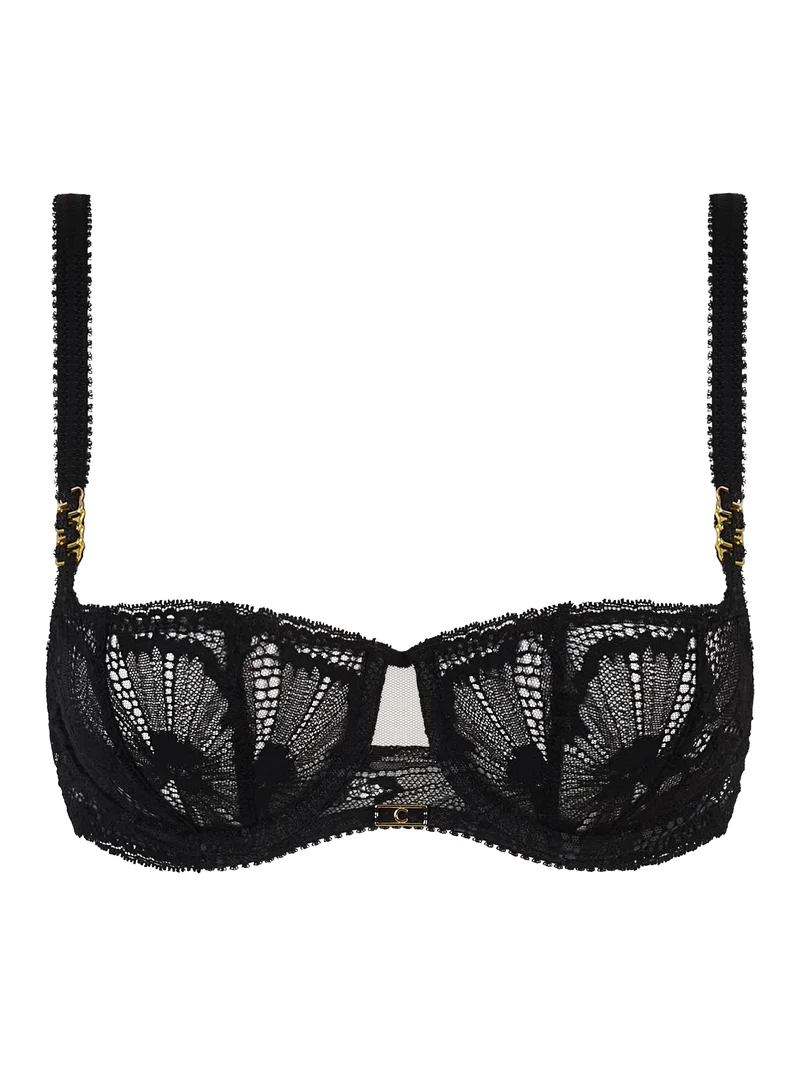 Soutien-gorge balconnet demi-bonnet de la collection Muse en noir, offrant un décolleté ouvert, une forme relevée et des détails raffinés pour un style élégant.