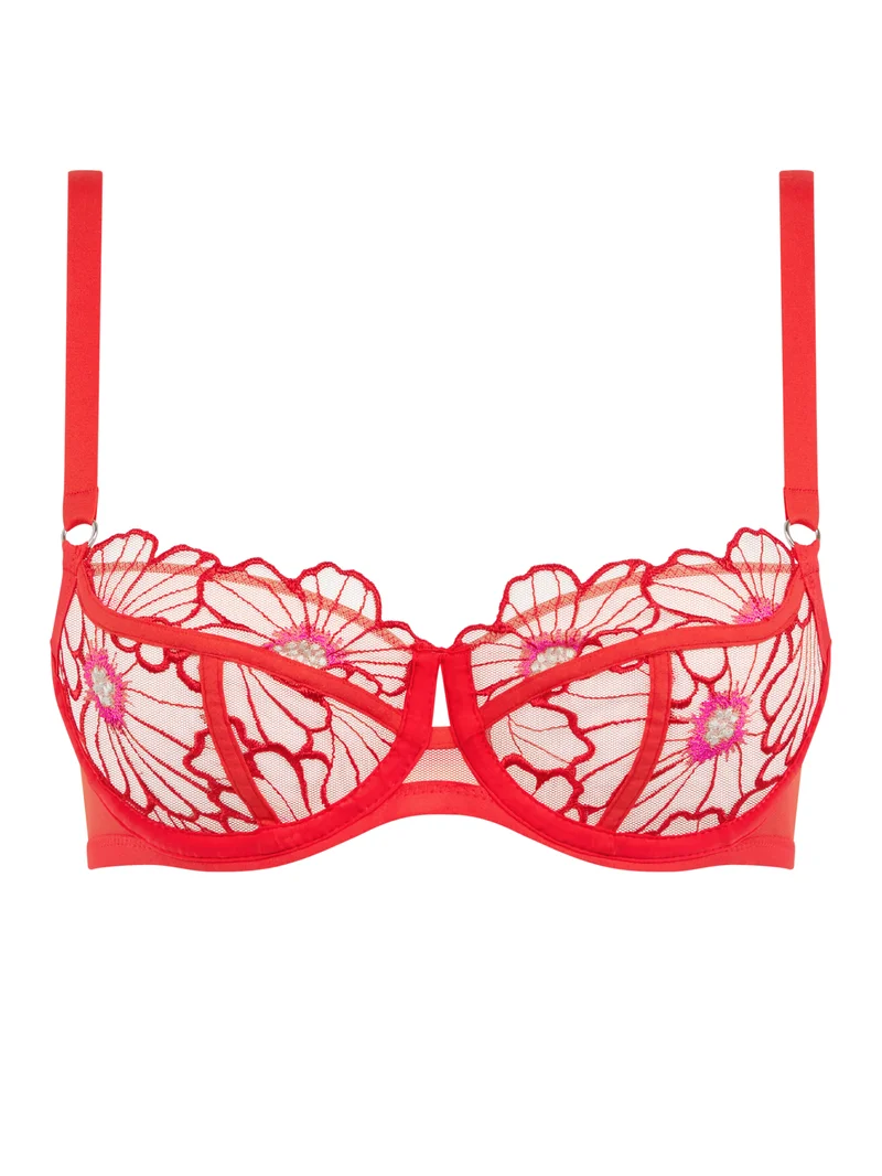 Un soutien-gorge demi-bonnet magnifiquement galbant, orné de broderies éclatantes et d’un décolleté sublimé.