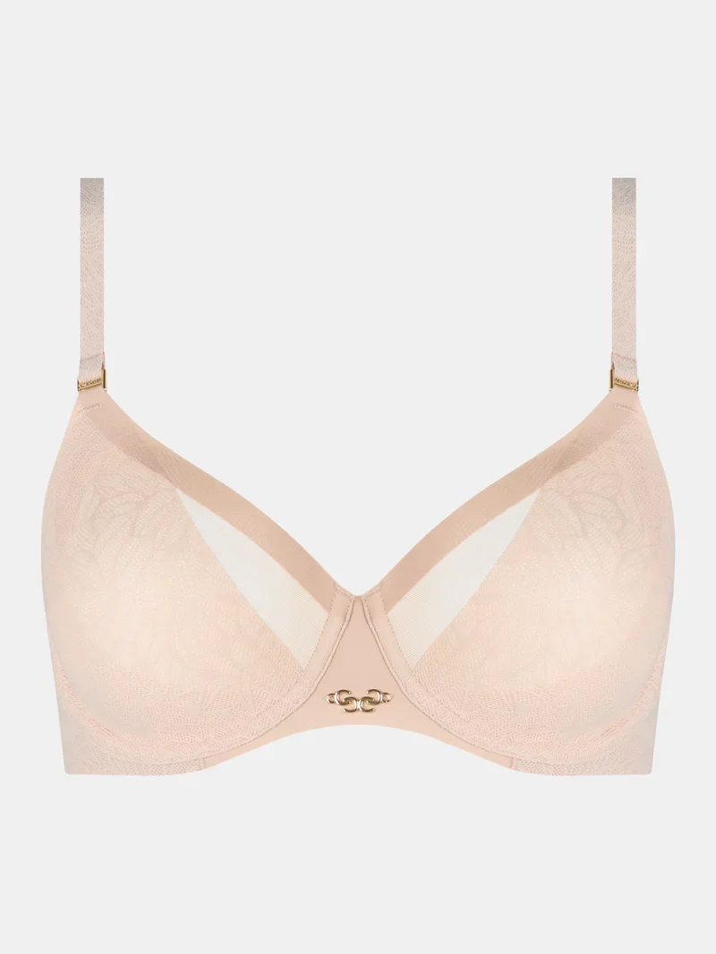 Chantelle – Soutien-gorge moulé couvrant en pure dentelle Beige doré