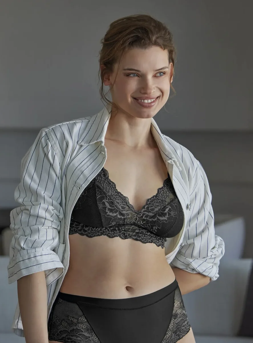 Confectionnée en tissu stretch ultra-doux et ornée de délicates touches de dentelle, la brassière Greta Foam sublime la silhouette grâce à un galbe naturel et un confort raffiné. Ses bonnets en mousse légère offrent un maintien subtil et une silhouette lisse sous les vêtements. Un soutien flexible assure un léger rehaussement sans armatures contraignantes, pour un confort optimal tout au long de la journée. Sa finition lisse la rend invisible sous les vêtements légers. Son coloris noir intemporel apporte une touche d’élégance sophistiquée à votre collection de lingerie. Idéale pour un confort quotidien, un style décontracté et une élégance naturelle.