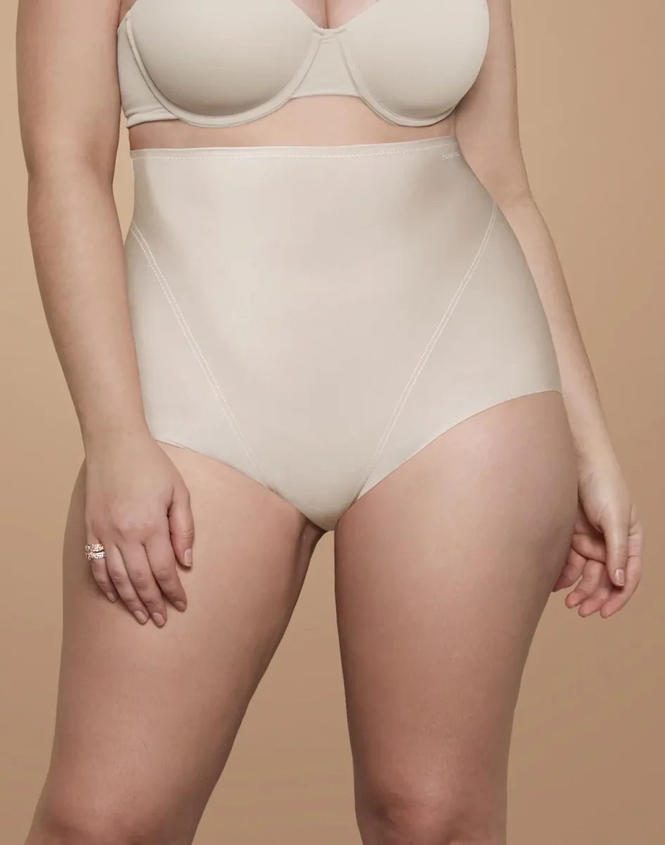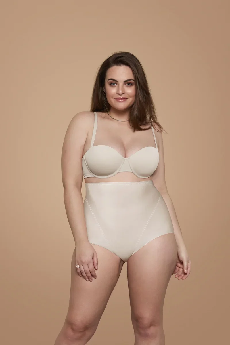 A sculpting super high-waist brief designed for enhanced smoothing and support in versatile Dune.