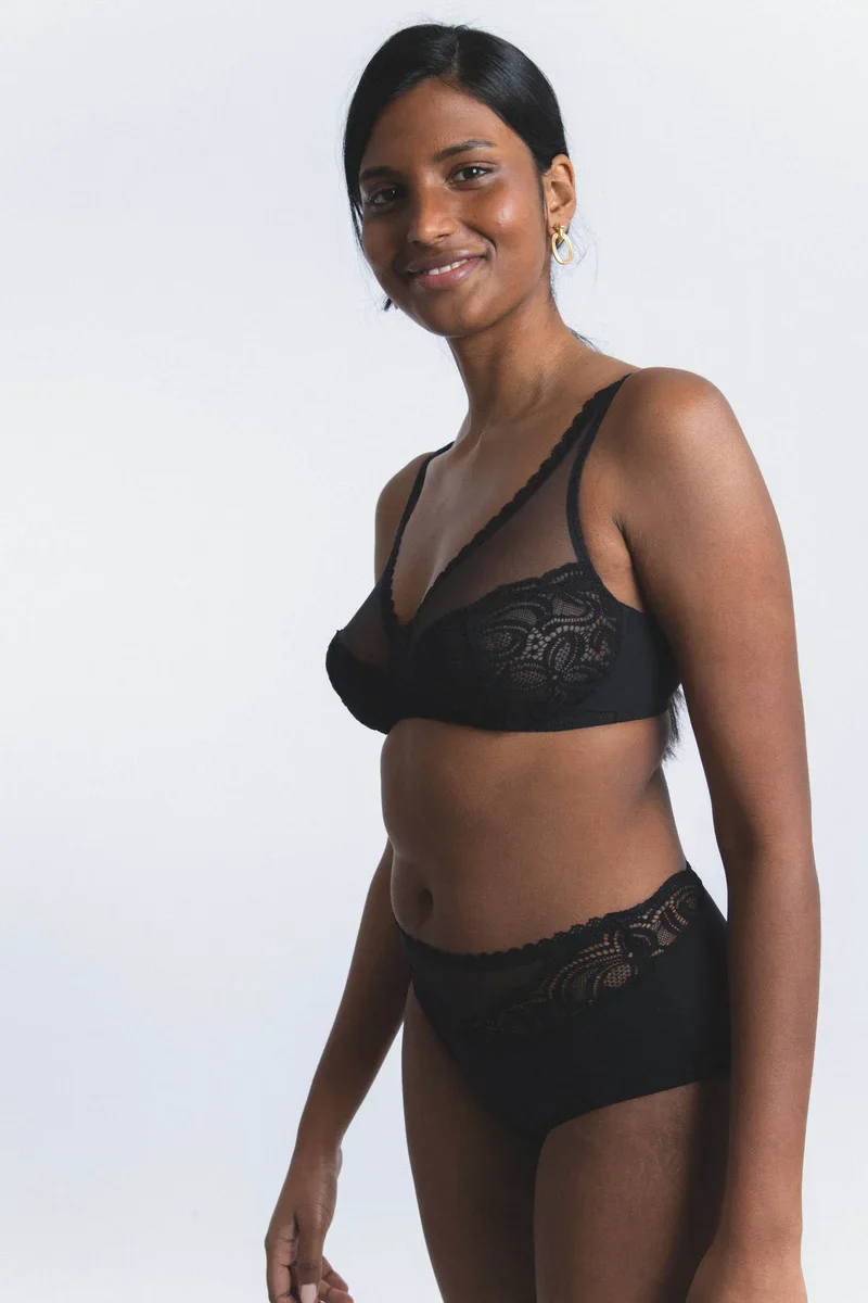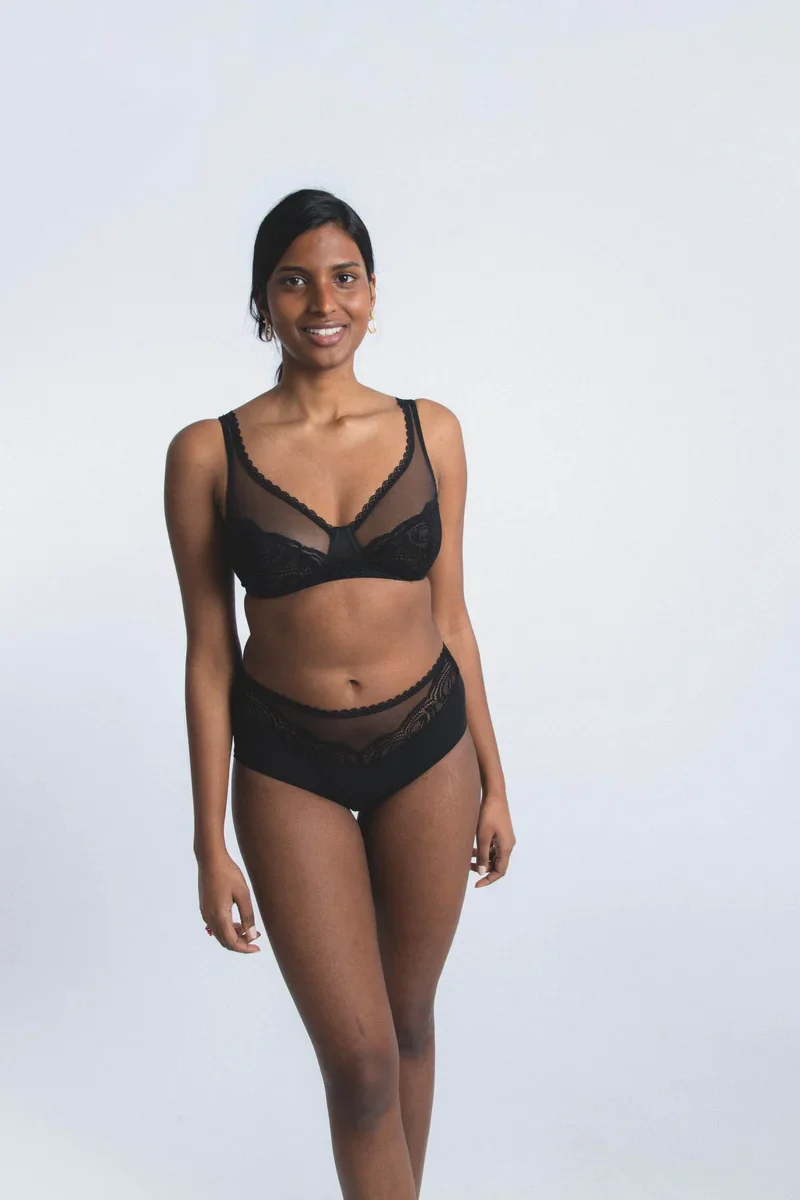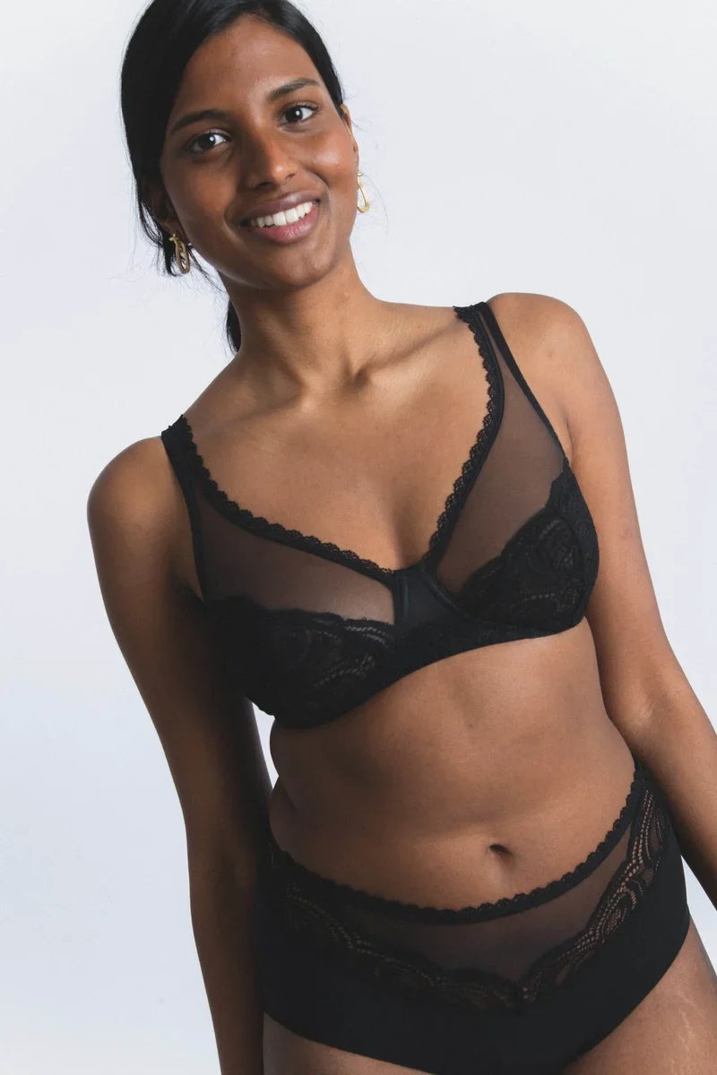 Une brassière sans armatures brodée noire, offrant un confort tout en douceur et ornée de délicats détails floraux.