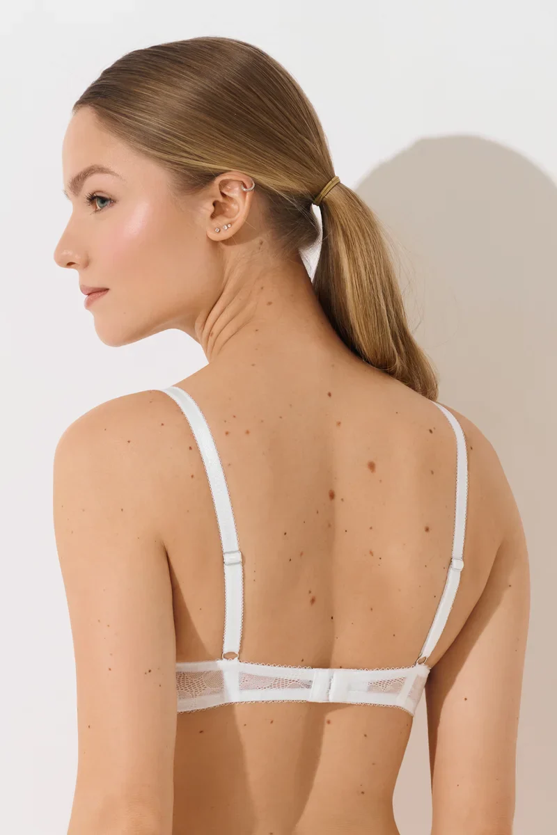 Un soutien-gorge push-up blanc raffiné avec des accents de dentelle pour un maintien subtil et élégant.