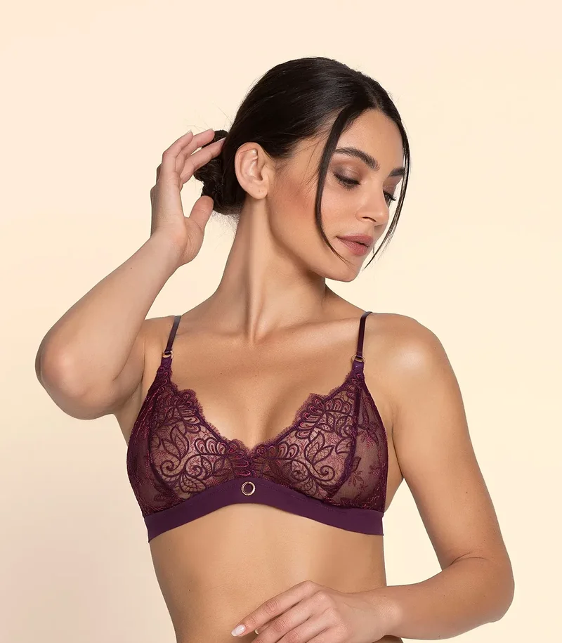 Soutien-gorge souple sans armatures. Forme triangulaire légère et confortable.