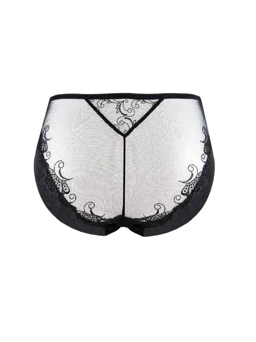 Une culotte gainante élégante couleur Noir, conçue pour une couvrance flatteuse et ornée de broderies raffinées.