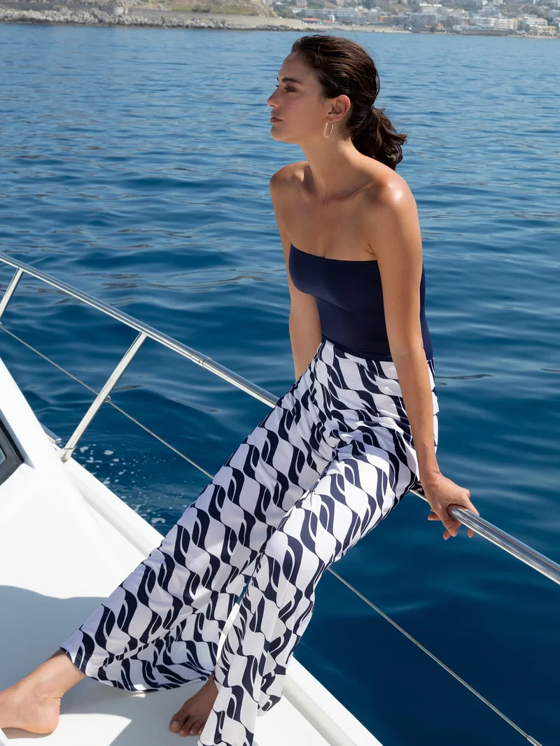 Confectionnée dans un tissu luxueux et fluide, cette combinaison bustier crée une silhouette harmonieuse. Le corsage structuré galbe et soutient la poitrine, tandis que le pantalon à jambes larges allonge la silhouette avec élégance. Conçue pour une invisibilité discrète par-dessus un maillot de bain, elle offre une finition soignée et épurée. La teinte Bleu Danse apporte une touche de sophistication vibrante et de glamour contemporain à votre garde-robe de vacances. Alliant structure et confort, elle assure un maintien optimal et une liberté de mouvement totale. Idéale pour des soirées élégantes en bord de mer et des occasions raffinées en station balnéaire.