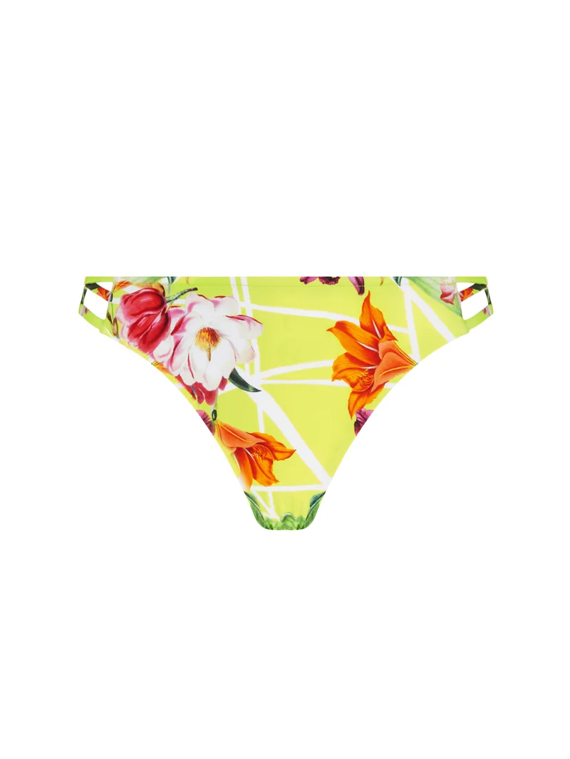 Conçue pour une couvrance arrière légère, cette culotte brésilienne met en valeur un imprimé floral éclatant tout en offrant une silhouette lisse et flatteuse. Parfaite pour un look de maillot de bain estival et affirmé.
