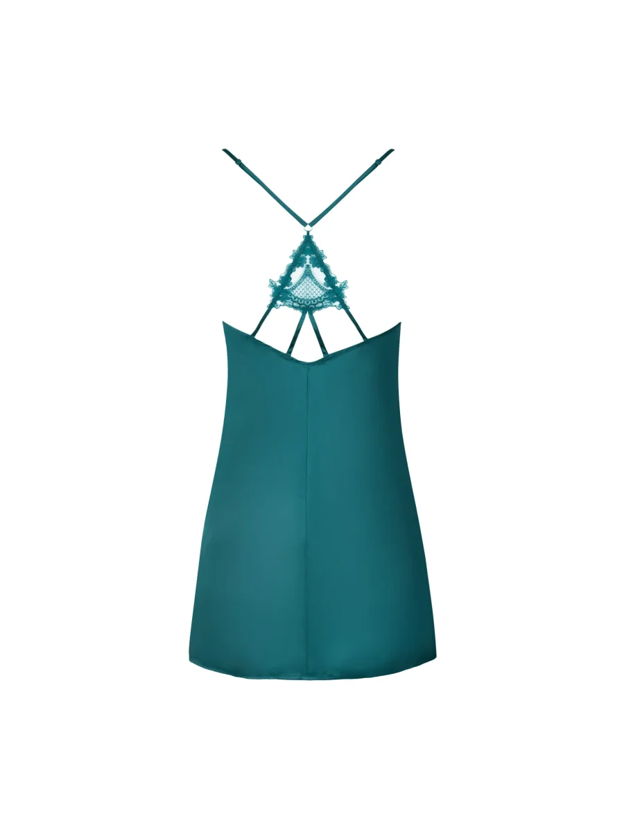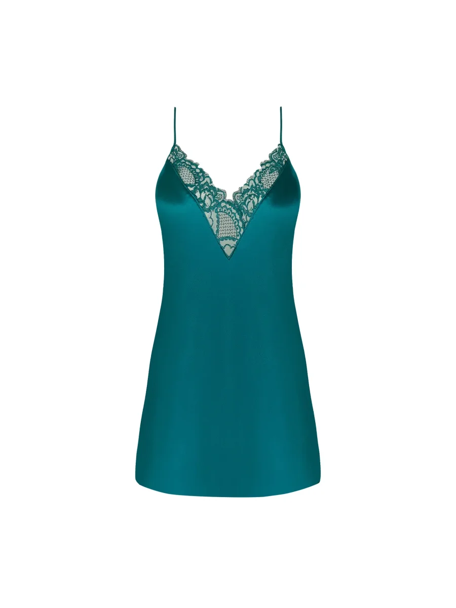 - Nuisette en satin de soie avec broderie appliquée au décolleté et fines bretelles en soie.