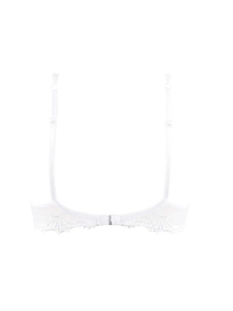 Confectionné avec des bonnets moulés lisses, ornés d’une broderie florale délicate et douce au toucher, ce soutien-gorge push-up sublime la silhouette avec élégance. Le rembourrage progressif crée un décolleté flatteur et galbe la poitrine, tandis que l’armature assure un maintien optimal. Conçu pour une invisibilité parfaite sous les vêtements, il garantit une finition impeccable sous les vêtements ajustés. La teinte Blanc apporte une élégance fraîche et un raffinement intemporel. Alliant galbe sculpté, confort et savoir-faire couture, il incarne le raffinement du design français. Idéal pour les mariées, les grandes occasions et une élégance quotidienne assurée.