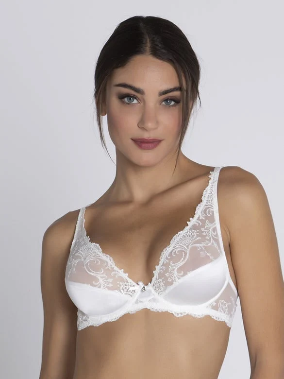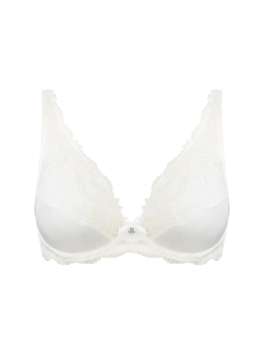 Le soutien-gorge push-up Lise Charmel Splendeur Soie Glam couleur écru nacre offre un romantisme lumineux et un galbe spectaculaire.