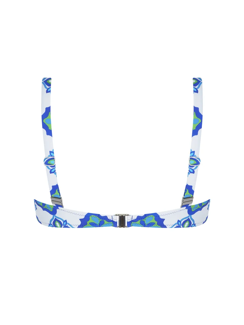 Le haut de bikini à armatures Antigel Halter de L’Artisane, couleur Bleu Céramique, offre un maintien structuré et un style dos nu élégant.