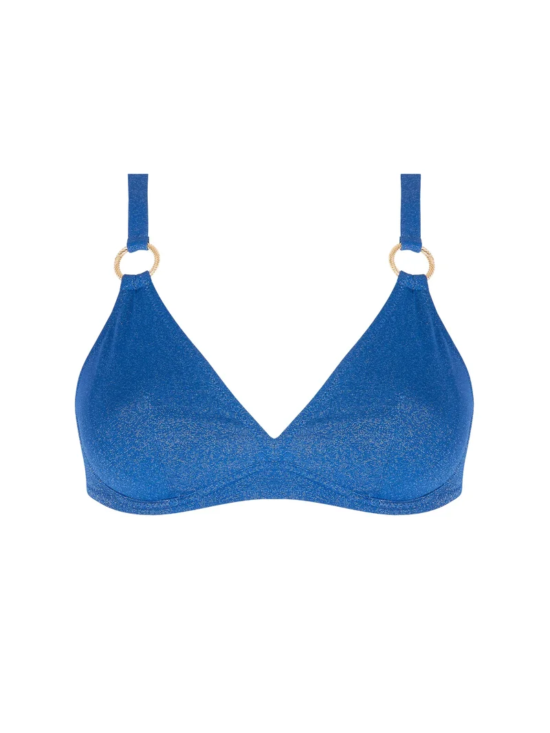 • Soutien-gorge triangle en maille unie pailletée, avec des bonnets triangle épurés et un délicat anneau bijou ciselé à la base de chaque bretelle.