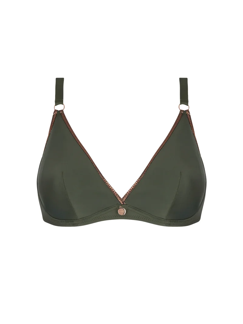 Maillot de bain Antigel de Lise Charmel – Haut de bikini dos nu à armatures La Smartissime, couleur kaki bronze