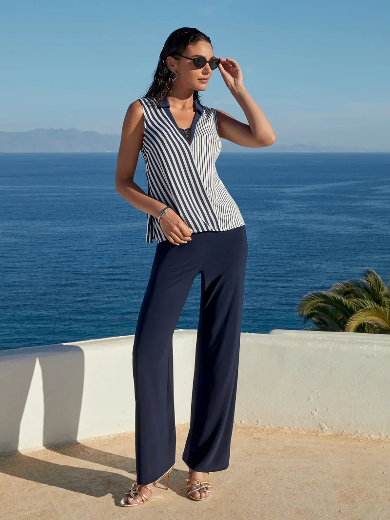 Confectionné dans un tissu doux et respirant au toucher fluide et soyeux, ce pantalon à jambes larges crée une silhouette élancée et gracieuse. Sa coupe décontractée épouse délicatement les hanches, offrant un confort optimal tout en préservant une élégance naturelle. Une taille élastiquée assure un enfilage facile et un maintien subtil sans compromettre le confort. Conçu pour une discrétion raffinée sous le maillot de bain, il se superpose harmonieusement tout en conservant une silhouette épurée. La riche teinte Ancre Navy évoque une sophistication nautique intemporelle, idéale pour créer des ensembles coordonnés. Parfait pour des déjeuners chics en bord de mer et des tenues élégantes en vacances.