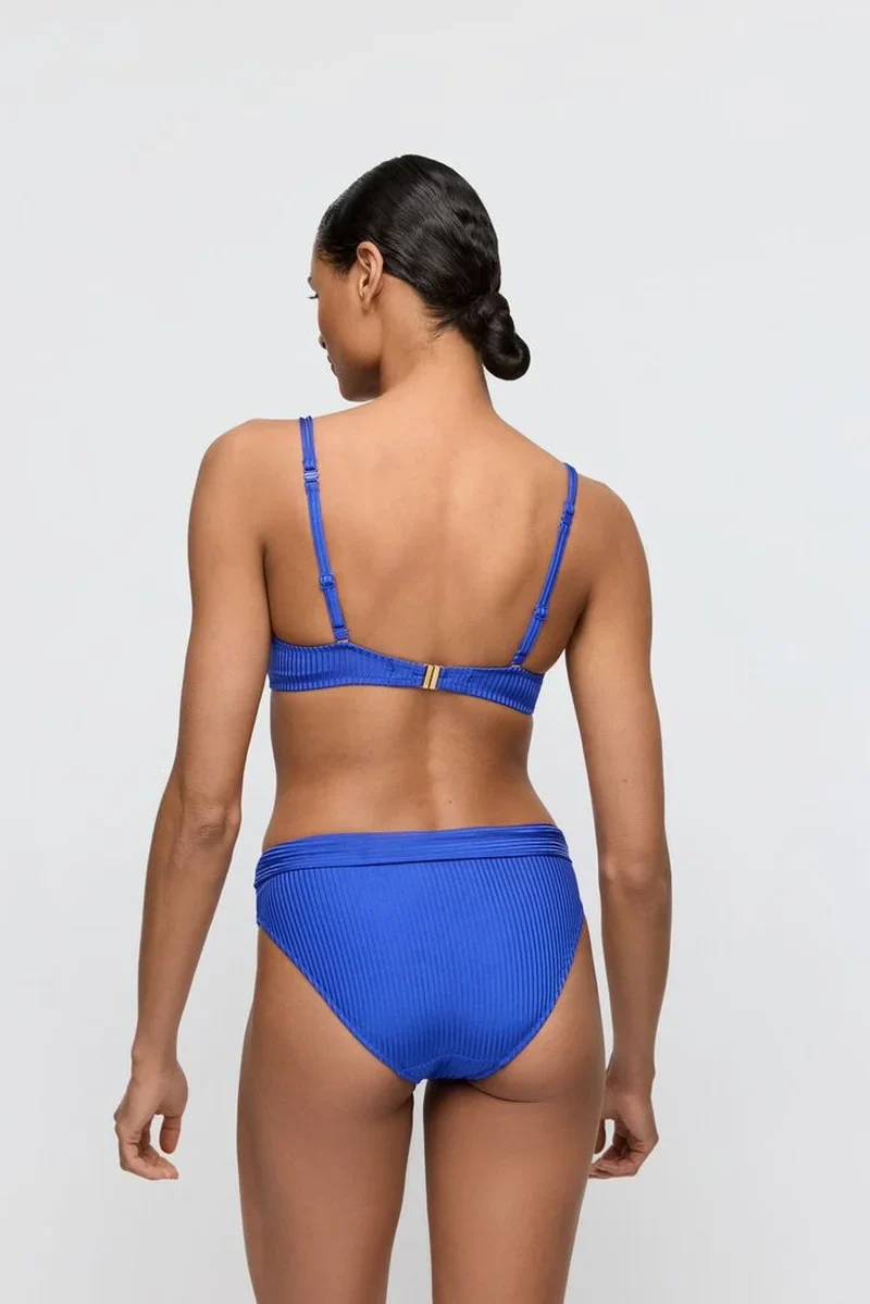 Culotte de bikini pliable et polyvalente, de couleur bleu électrique, offrant une couvrance ajustable et un style contemporain audacieux.