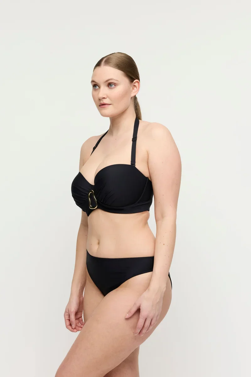 Un slip de bikini brésilien élégant offrant une silhouette galbée et une élégance noire intemporelle.