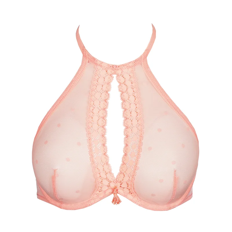 Confectionnée en tulle brodé délicat, léger et respirant au contact de la peau, cette brassière offre une silhouette naturellement sublime. Sans armatures, elle assure un maintien confortable tout en galbant délicatement la poitrine au quotidien. Sa doublure légère structure la poitrine sans compromettre sa douceur, offrant une silhouette flatteuse sous les vêtements. Sa finition intérieure lisse la rend invisible sous les tissus fins, alliant élégance et praticité. La teinte Pêche Néon apporte une touche de féminité vibrante à votre collection de lingerie. Alliant confort, galbe et style contemporain, elle constitue une alternative raffinée aux soutiens-gorge traditionnels. Idéale pour une tenue décontractée, les superpositions légères et un confort élégant au quotidien.