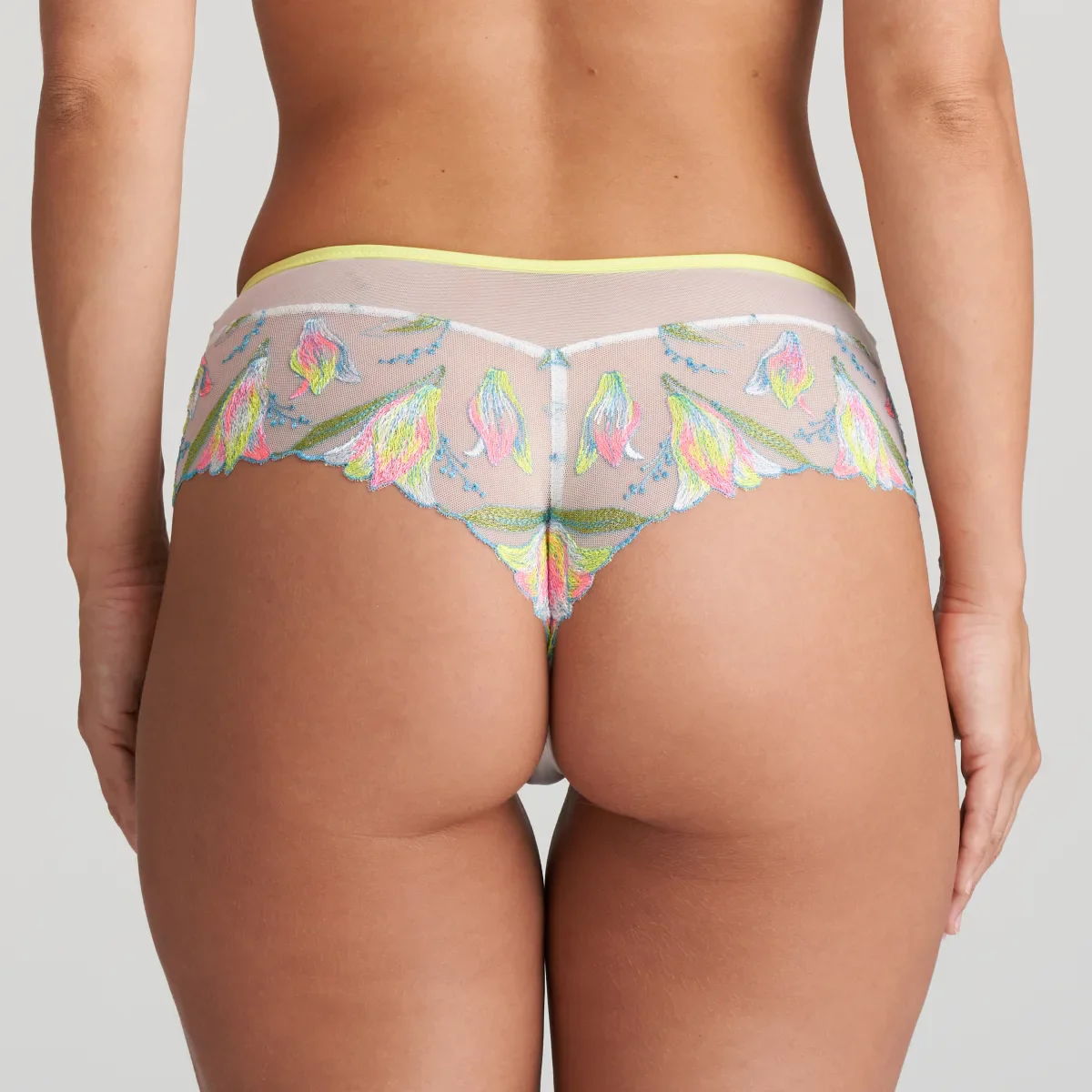 La collection Yoly de Marie Jo séduit par ses broderies florales audacieuses et ses contrastes de couleurs saisissants, offrant une touche moderne aux modèles de lingerie classiques. Chaque pièce est confectionnée avec précision, alliant des détails complexes à des structures confortables et de soutien.