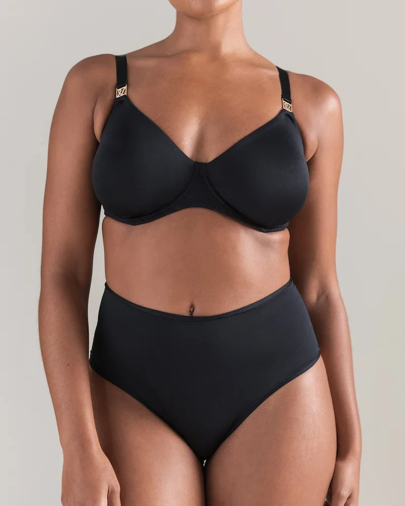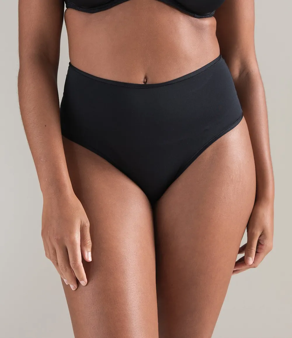 La culotte taille haute stretch seconde peau Nudea noire offre une silhouette élégante et un confort au quotidien.