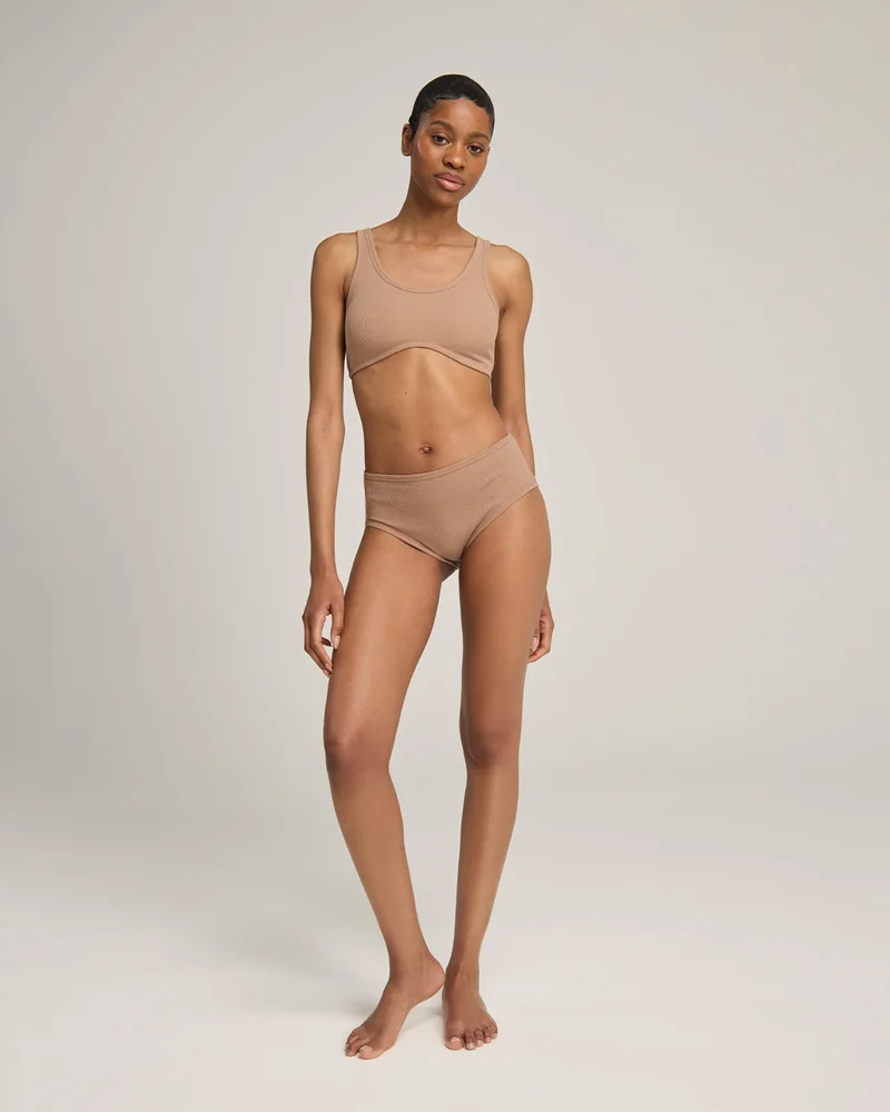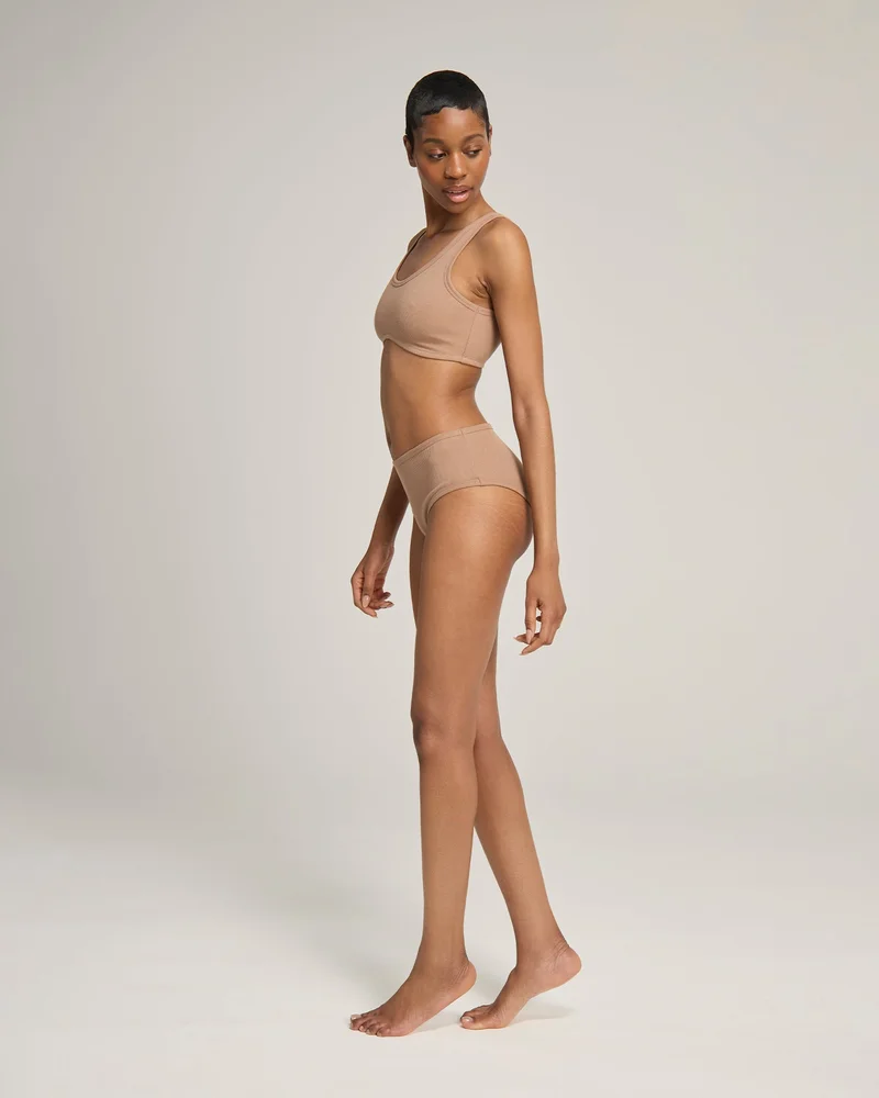 Confectionnés en jersey de coton biologique respirant, doux et agréable au toucher, ces slips mi-longs assurent un confort optimal au quotidien grâce à leur effet sculptant subtil. Leur taille mi-haute sublime les courbes naturelles tout en offrant un maintien équilibré et une grande liberté de mouvement. Conçus pour une invisibilité totale sous les vêtements, ils créent une base impeccable sous les pièces tailleur. Le tissu stretch garantit une liberté de mouvement totale tout au long de la journée. La teinte moka apporte une chaleur riche et une élégance contemporaine. Alliant douceur, galbe et style minimaliste, ils deviennent des indispensables. Idéaux pour le travail, les tenues décontractées et un confort quotidien en toute confiance.