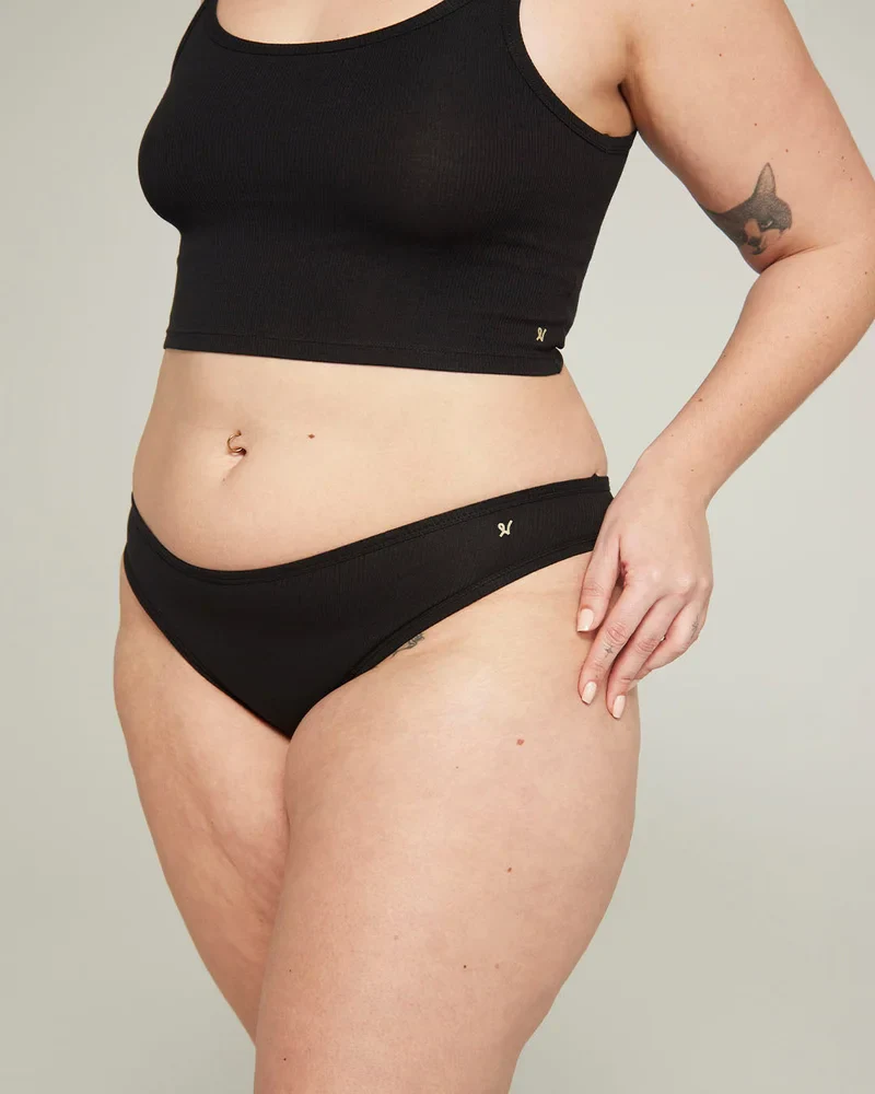 Confectionnées en jersey de coton biologique doux, agréable au toucher et respirant, ces mini-culottes offrent un confort optimal au quotidien. Leur coupe taille basse sublime les courbes naturelles tout en assurant une couvrance équilibrée et un galbe subtil. Invisibles sous les vêtements, elles créent une base impeccable sous les tenues moulantes. Leur tissu stretch garantit une grande liberté de mouvement et un confort durable tout au long de la journée. Le coloris noir leur confère une élégance intemporelle et un style minimaliste. Alliant douceur, galbe et praticité, elles deviendront vite des indispensables de votre garde-robe. Idéales au quotidien, à superposer et pour un confort absolu.