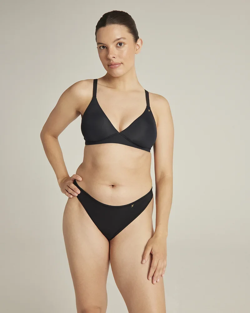 La brassière Nudea Second Skin Stretch The Stretch Easy Does It en noir offre un maintien sans coutures et une simplicité moderne.