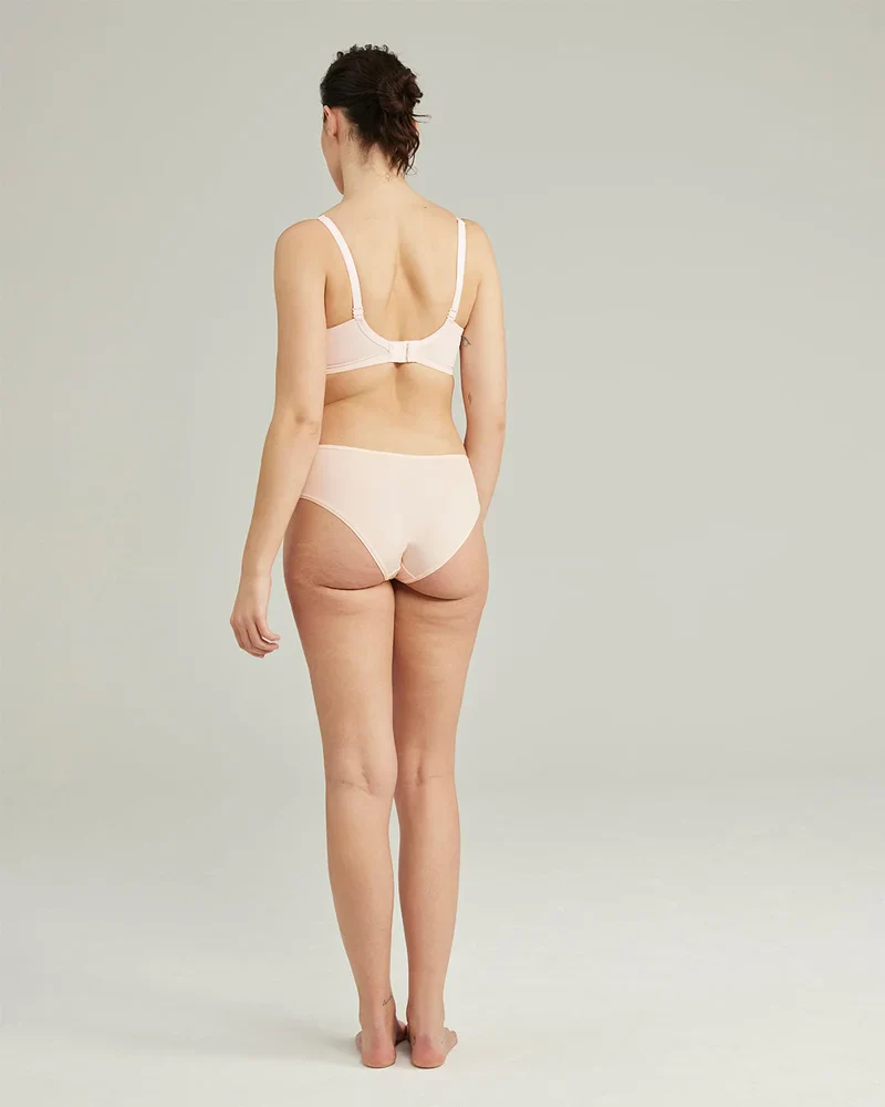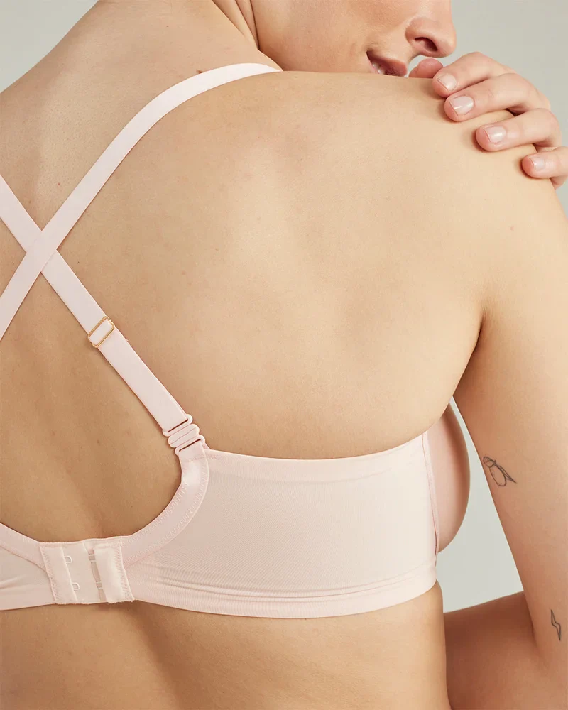 Un soutien-gorge T-shirt extensible rose poudré, conçu pour un galbe invisible et un confort féminin tout en douceur.